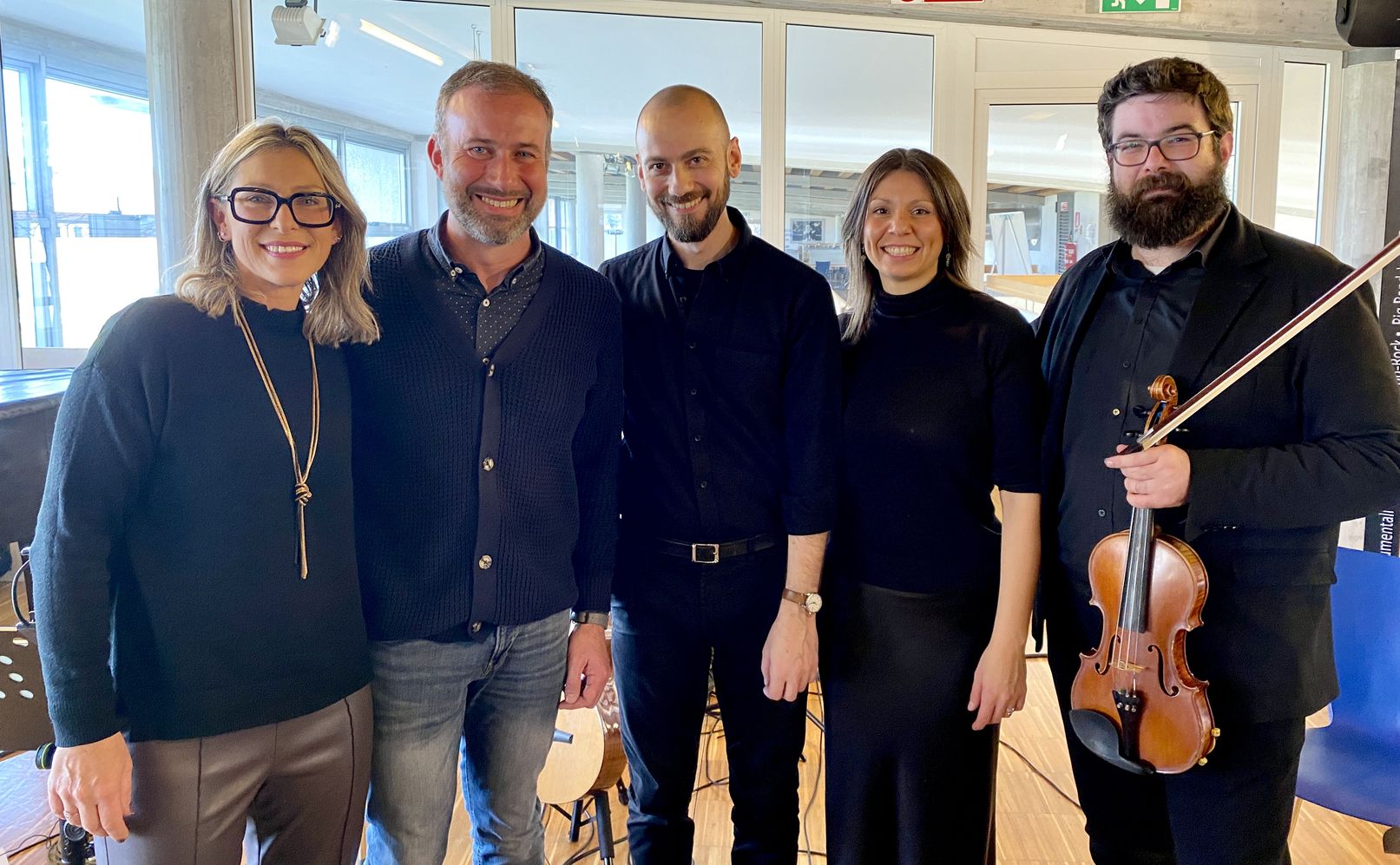 Ieri alle 11 in Biblioteca a Codroipo si è tenuto il terzo dei concerti della 33ma edizione de “I concerti della domenica” organizzata dall’Associazione Musicale e Culturale “Citta di Codroipo” con la collaborazione del Comune di Codroipo e la direzione artistica del M° Giorgio Cozzutti. Protagonisti Marco Bianchi alla chitarra, Giovanni Di Lena al violino e Sara Della Mora soprano ovvero il Trio Amedyez. Un concerto ricco di sfumature, musicalità e poesia, provenienti da culture diverse anche molto lontane tra loro, mediato e impreziosito dalla sensibilità musicale e dalle doti tecniche dei tre musicisti. Un’occasione concreta di percepire il confine e le differenze come una ricchezza nella quale tuffarsi, senza paura, alla scoperta dell’altro e dei suoi sentimenti, in fondo, non molto diversi dai propri. Un trio friulano che grazie alla propria cultura di confine ha saputo regalare al folto e partecipe pubblico oltre un’ora di musica di altissimo livello.