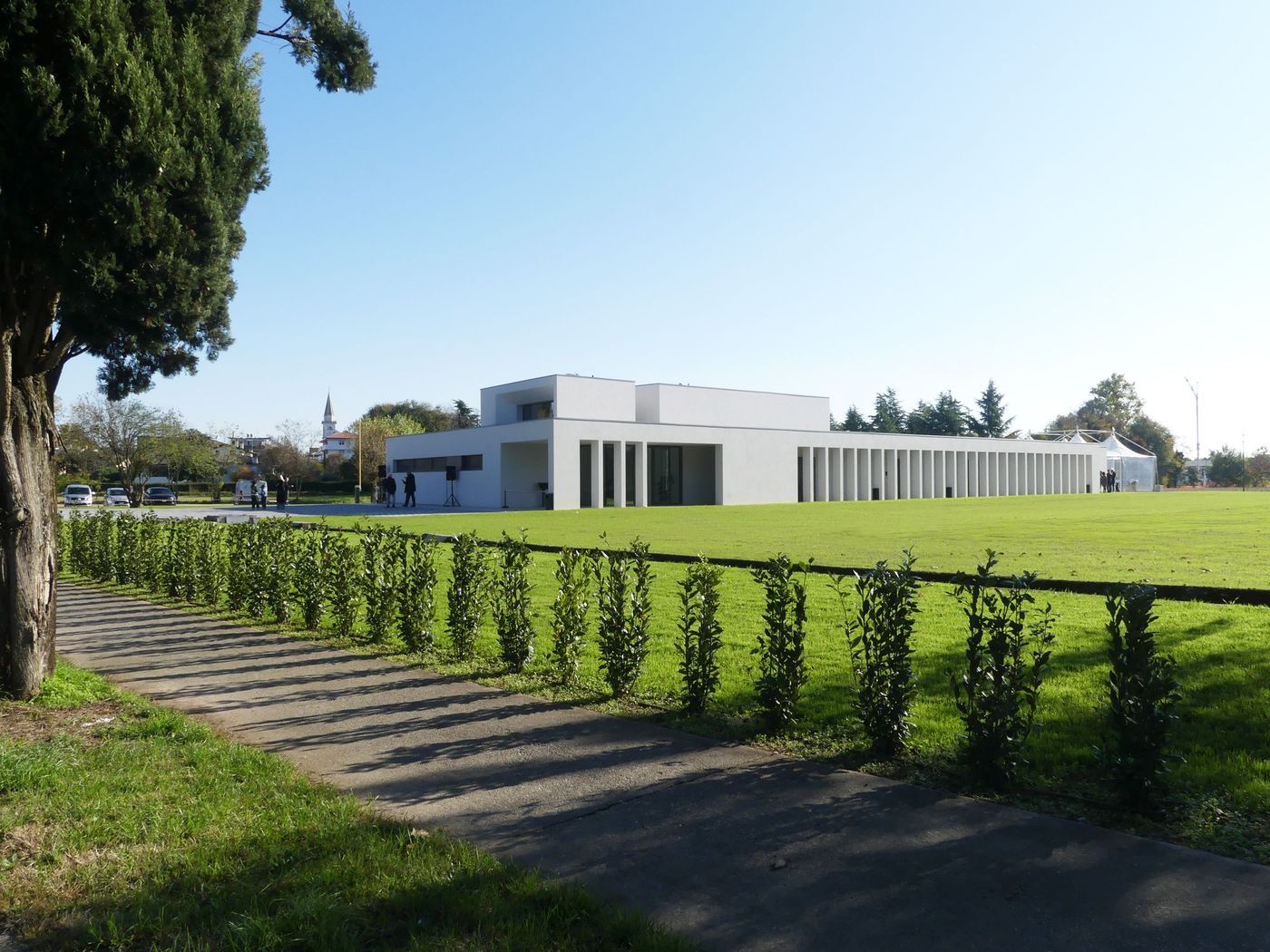L’architetto Maurizio Moretti, autore del progetto, ha descritto la nuova struttura come “minimalista, luminosa e dinamica, capace di spezzare il vento”. L’edificio comprende una sala del commiato e quattro camere ardenti. Ogni stanza si apre su un patio con un ulivo, simbolo di pace, mentre il colore bianco domina l’ambiente per evocare la luce che tutto avvolge.