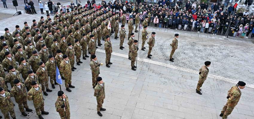Saluto ufficiale lunedì 12 gennaio a Codroipo in piazza Garibaldi ai Bianchi Lancieri in partenza per la missione internazionale KFOR in Kosovo. Presenti alla cerimonia il reggimento, accompagnato dalla fanfara dell’11° bersaglieri e dai rappresentanti delle Associazione combattentistiche e d’Arma. Una cerimonia impreziosita dalla presenza dei ragazzi e delle ragazze degli istituti scolastici di Codroipo.