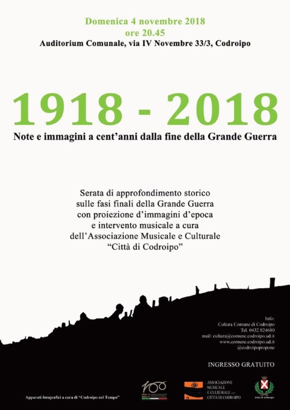 Serata di approfondimento storico sulle fasi finali della Grande Guerra con proiezione d'immagini d'epoca e intervento musicale a cura dell'Associazione Musicale e Culturale "Città di Codroipo"
