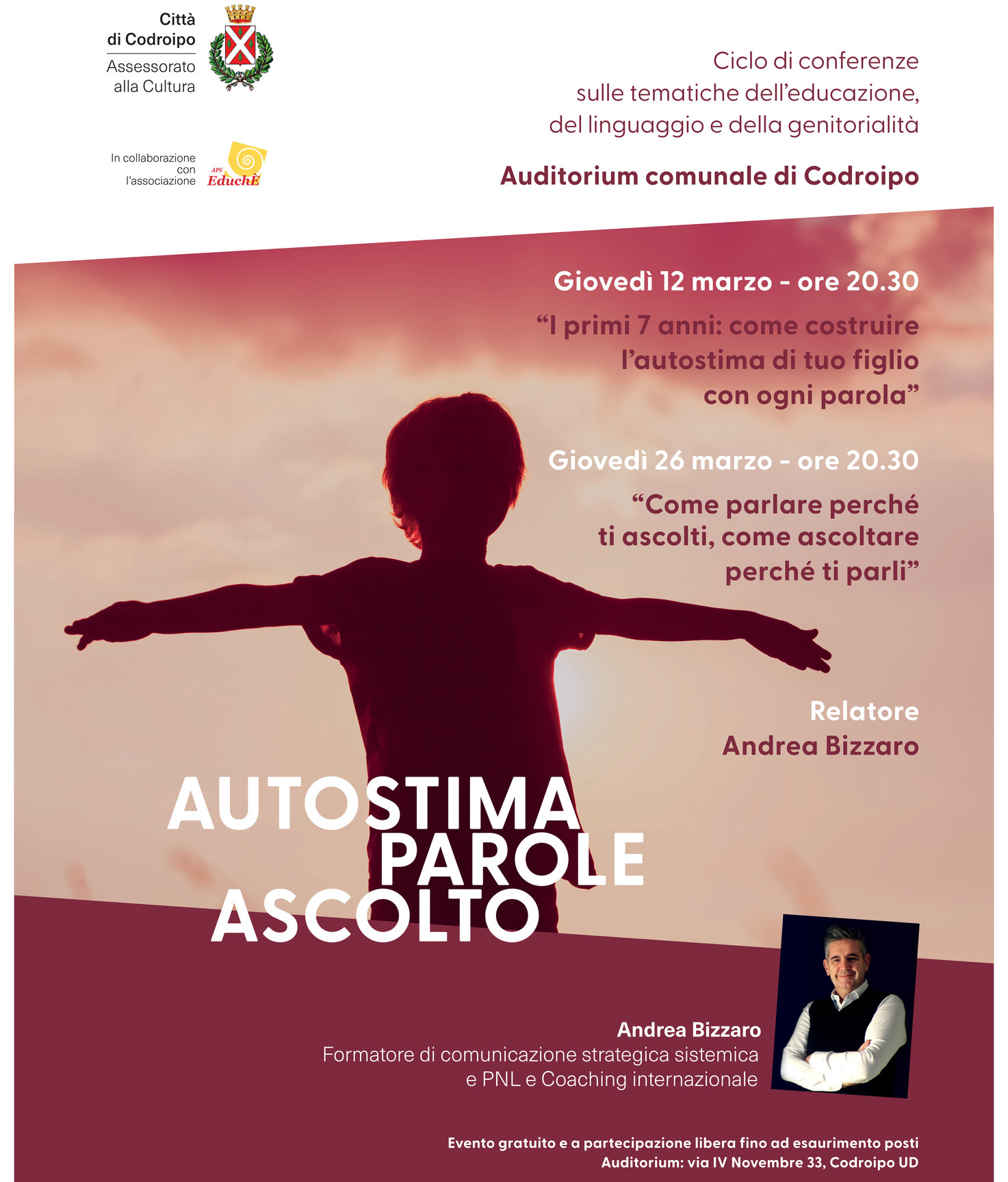 Interverrà Andrea Bizzaro, formatore di comunicazione strategica sistemica, PNL e coaching internazionale.