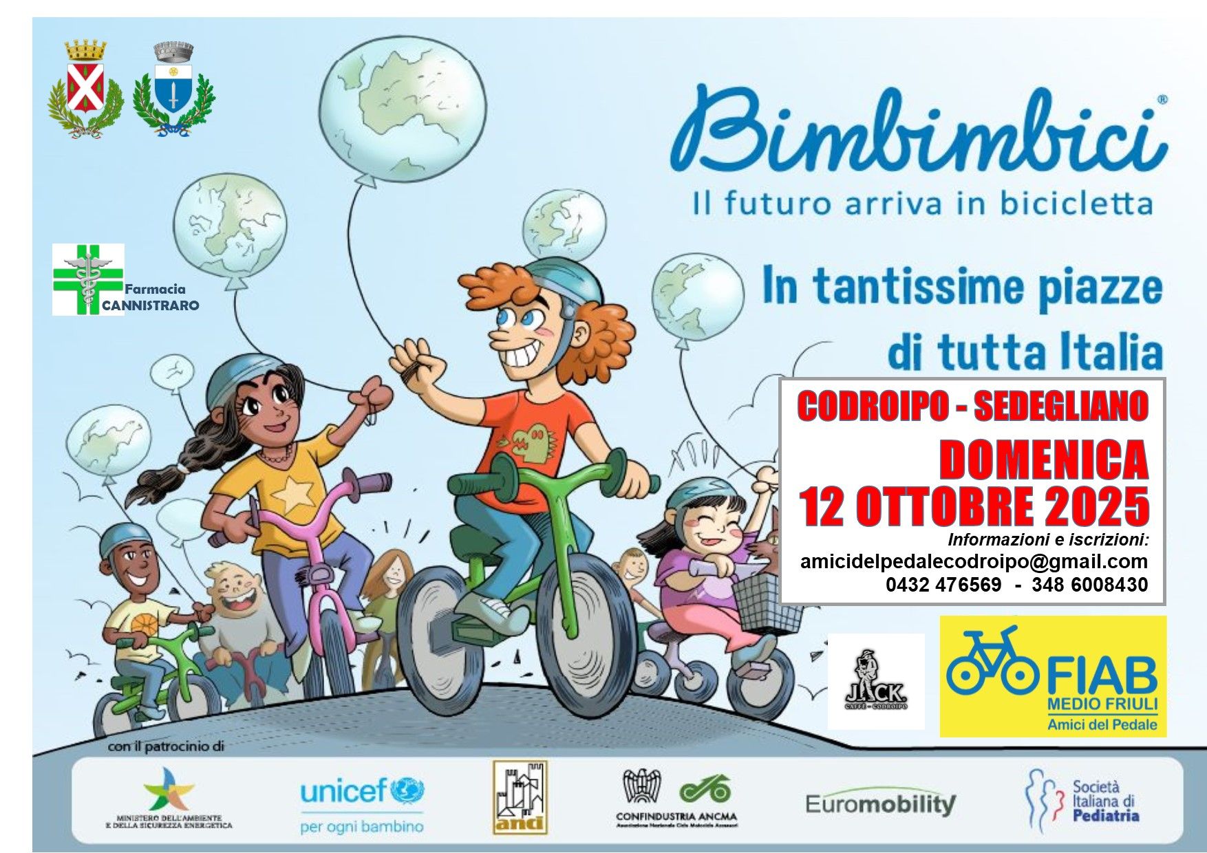 La Fiab Medio Friuli - Amici del Pedale organizza la Bimbimbici, quest'anno su un inedito percorso che raggiungerà anche il comune di Sedegliano.