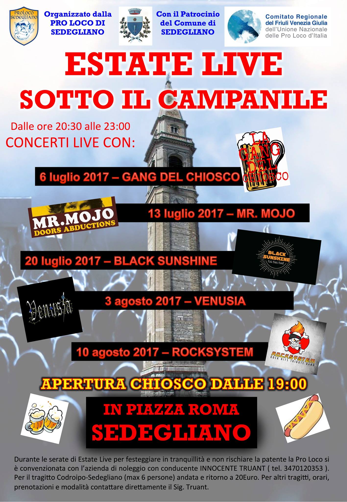 Giovedi 6, 13 e 20 luglio e giovedì 3 e 10 agosto 2017, Estate Live in piazza Roma a Sedegliano: concerti dal vivo e un fornitissimo chiosco!