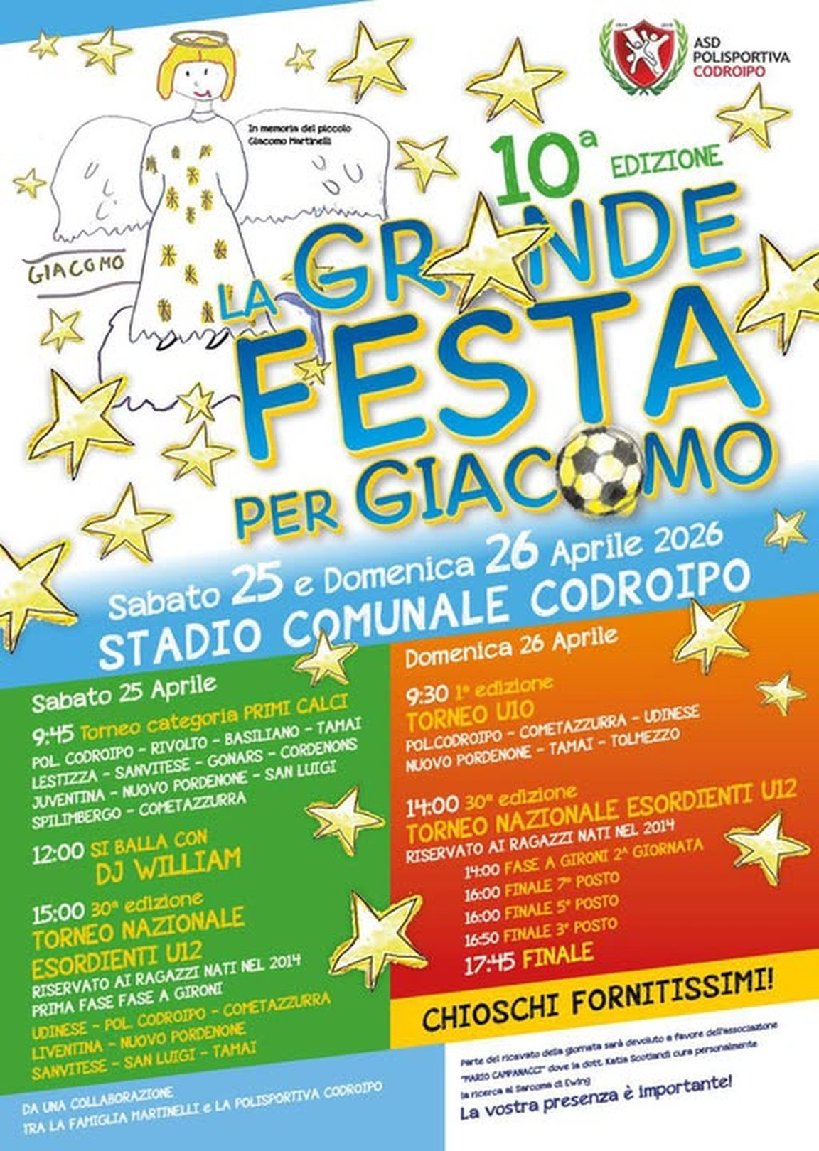 10^ edizione dell'iniziativa in memoria di Giacomo Martinelli, detto "Mino", giovane calciatore di 9 anni portato in cielo dal sarcoma di Ewing nel luglio 2015.