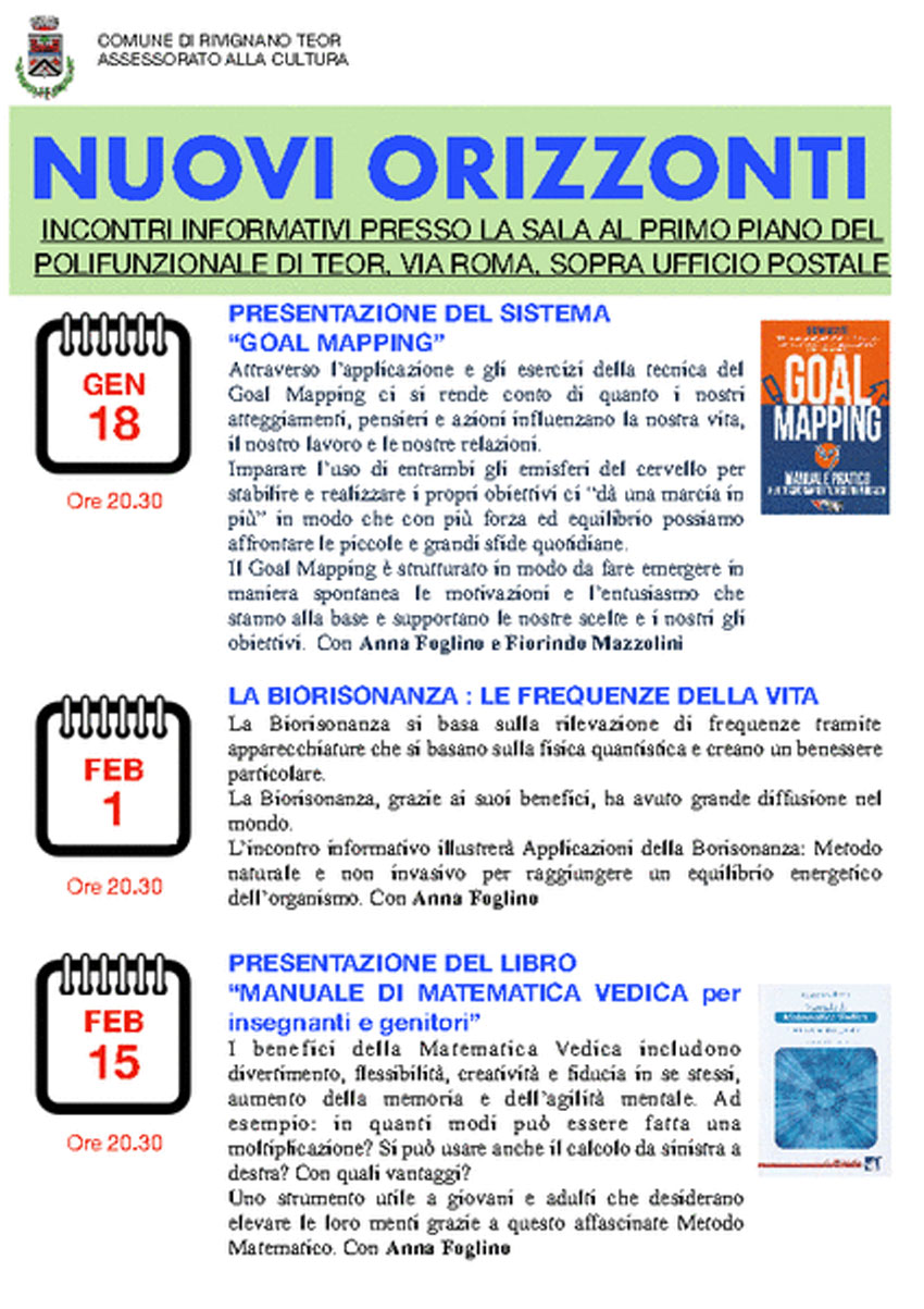 NUOVI ORIZZONTI: ciclo di incontri informativi a Teor