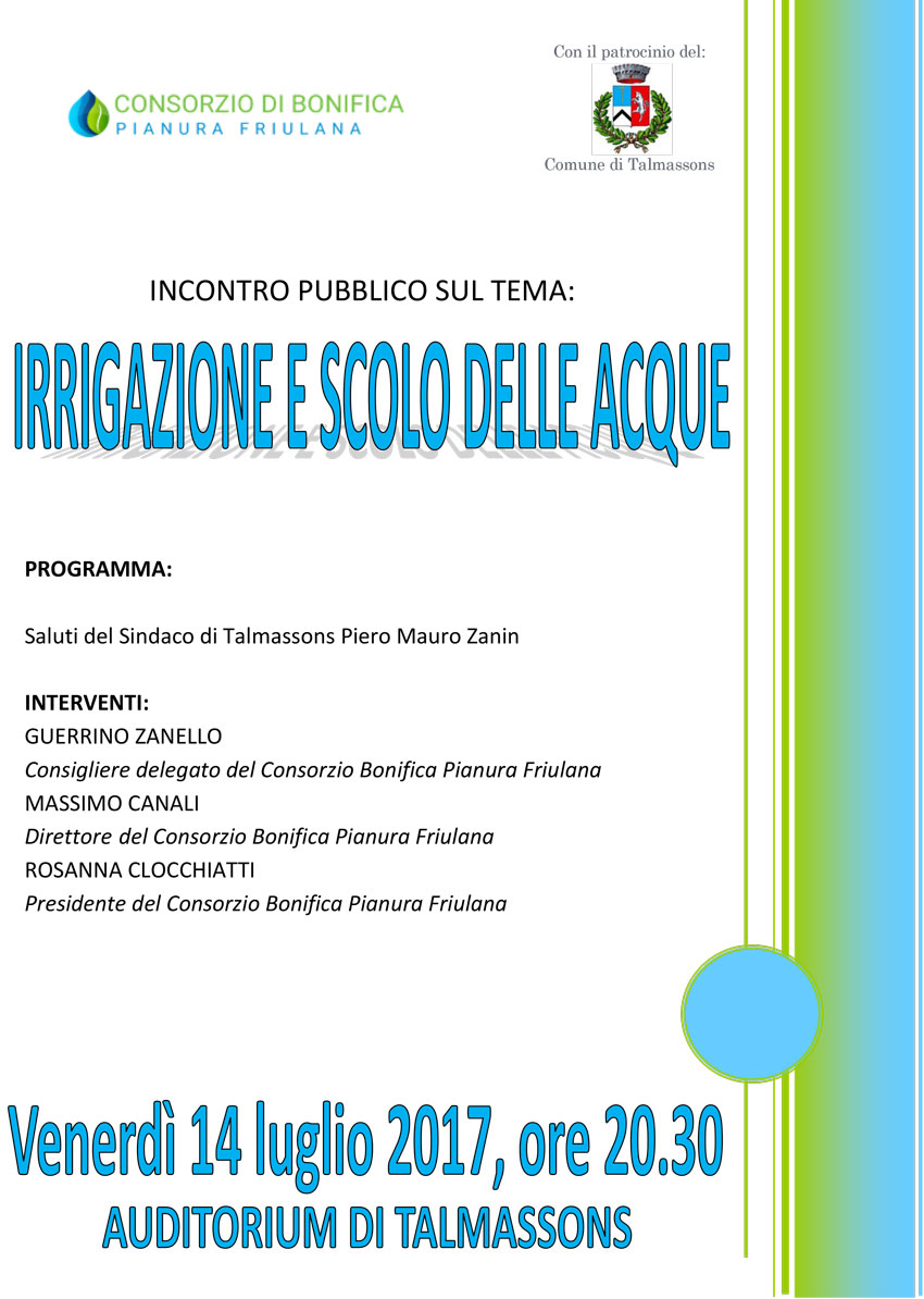 Incontro pubblico sul tema Irrigazione e scolo delle acque