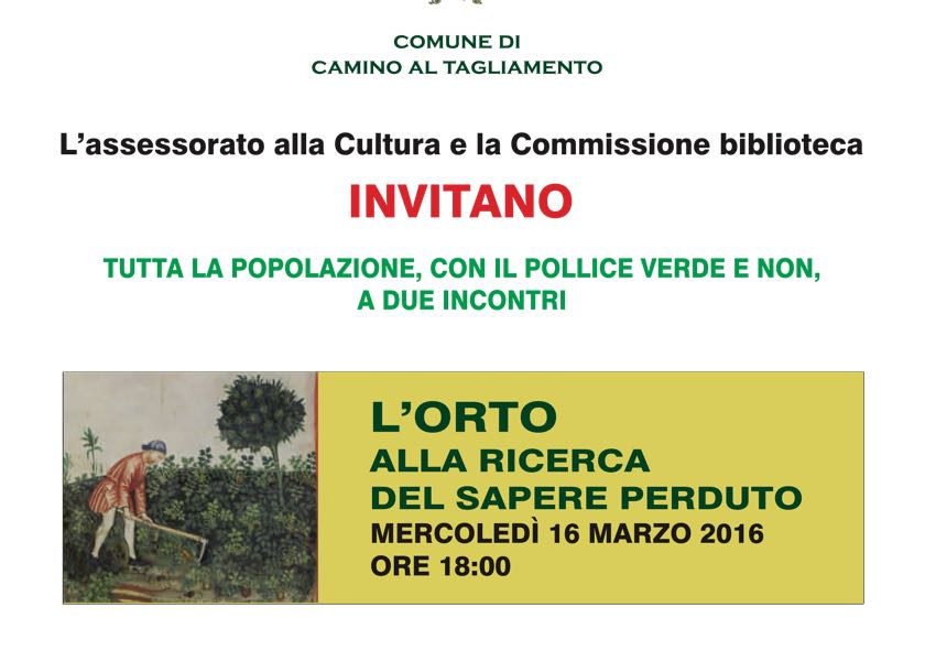 L'assessorato alla Cultura e la Commissione biblioteca INVITANO TUTTA LA POPOLAZIONE, CON IL POLLICE VERDE E NON, A DUE INCONTRI