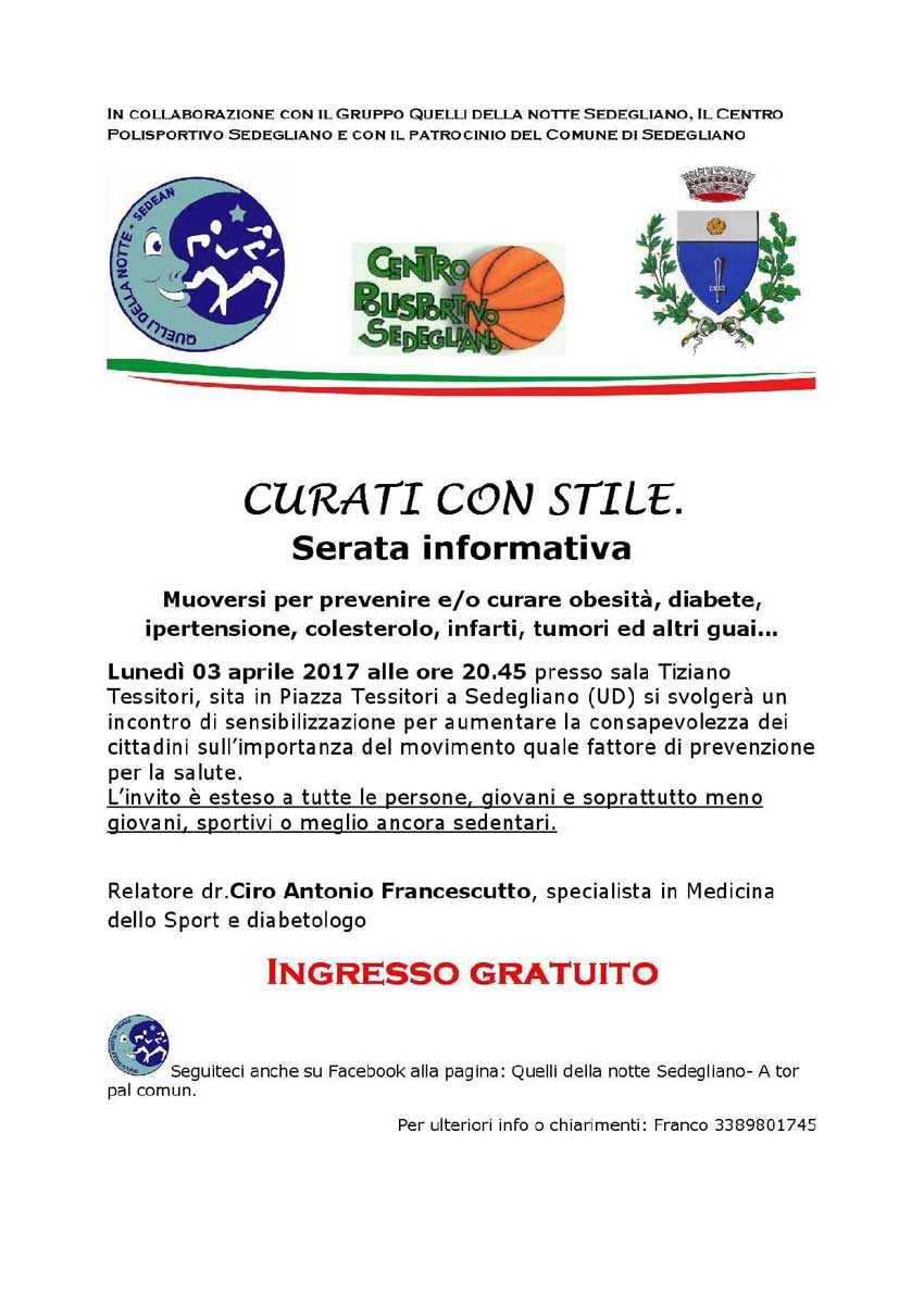 Serata informativa per la sensibilizzazione al movimento come "FARMACO" per la salute tenuta dal Dr. CIRO FRANCESCUTTO, medico sportivo e diabetologo e ideatore del fenomeno di "Quelli della notte".