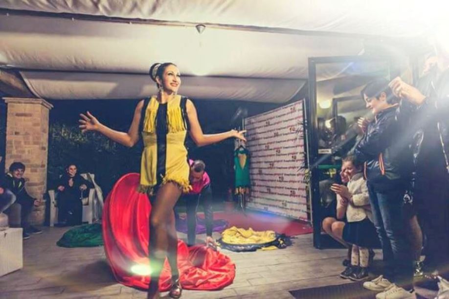 Proprio la cuginetta Daiana Orfei, erede della più famosa famiglia circense italiana, ha allestito uno spettacolo circense su palco.
