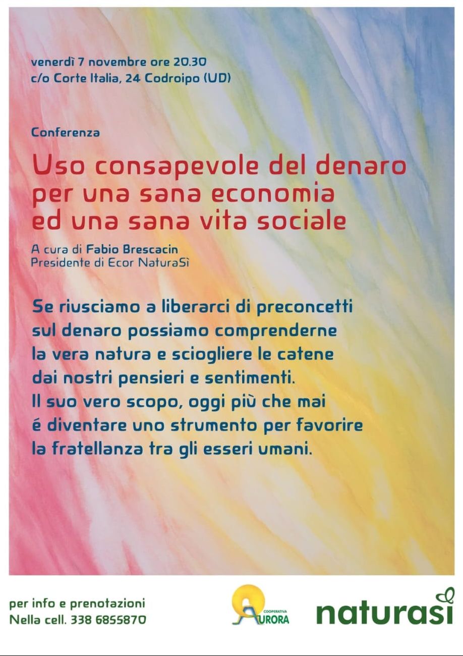 Incontro con Fabio Brescacin, Presidente di Ecor NaturaSì sull' "Uso consapevole del denaro per una saba eonomia e una sana vita sociale".