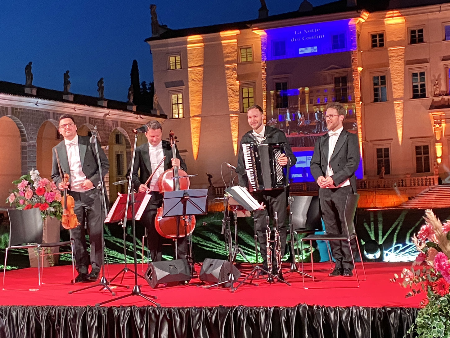 Un ensemble di quattro musicisti dei Wiener Philharmoniker per oltre un’ora hanno proposto un repertorio vario, con celebri brani internazionali e omaggi ai compositori italiani, accolti con entusiasmo da un pubblico in costante aumento.
