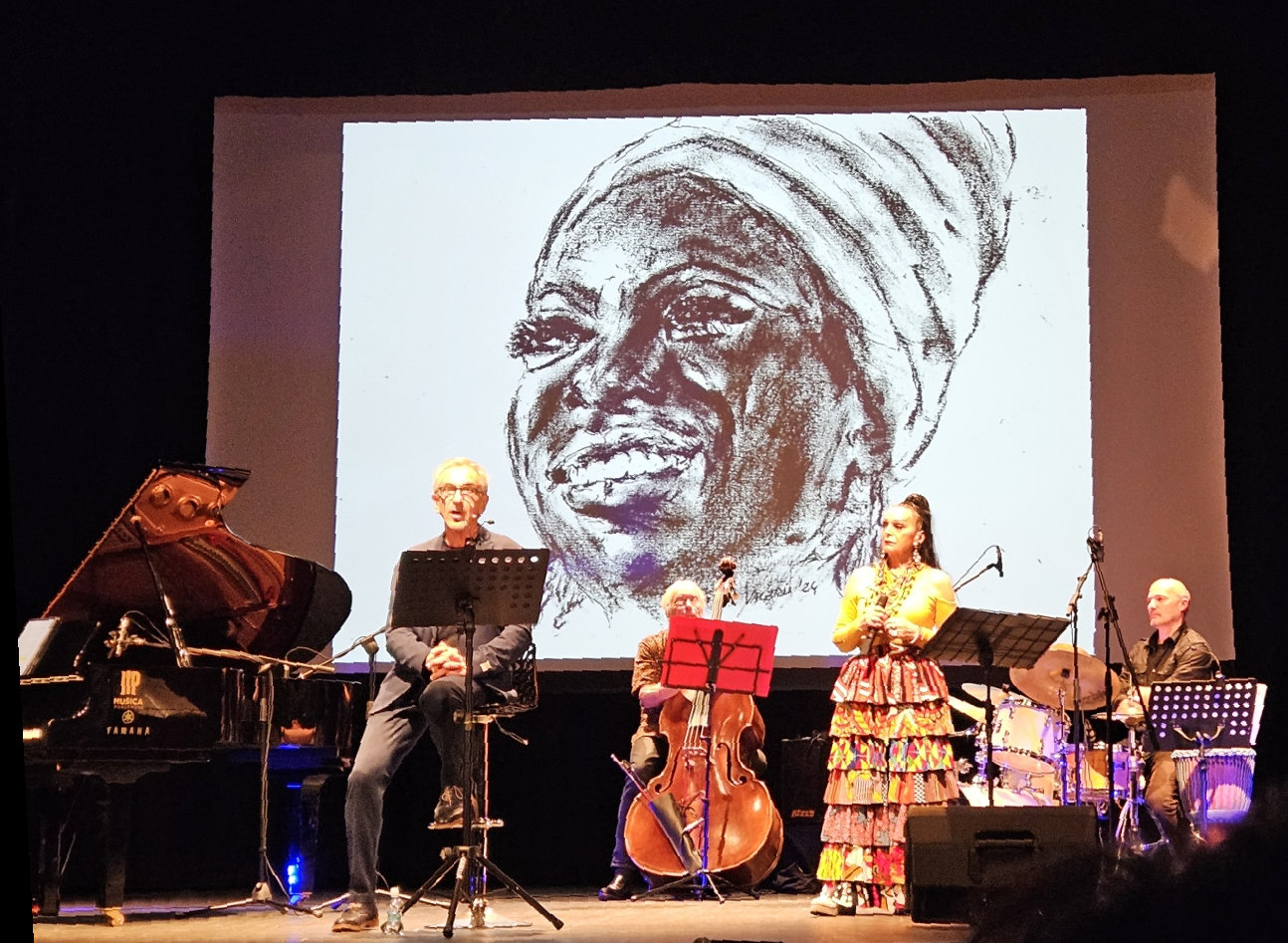 Ieri sera il Teatro Benois De Cecco di Codroipo ha ospitato “My Name Is Nina”, uno spettacolo capace di intrecciare narrazione e sonorità jazz per restituire al pubblico Eunice Kathleen Waymon, questo il vero nome di Nina Simone, una figura rappresentativa della cultura afroamericana del Novecento. L’artista del Nord Carolina, voce potente dell’epoca delle battaglie per i diritti civili negli Stati Uniti. Una vita forsennata e complessa, segnata da sfruttamento, solitudine e disagio interiore, ma anche da un impegno radicale e coerente: la scelta di cantare “per la sua gente”, prendendo posizioni sempre più nette, fino ad allontanarsi dall’industria musicale mainstream.