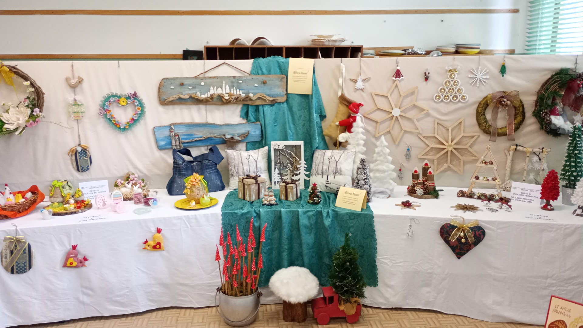 Ma non è tutto: alla mostra sono inoltre esposti lavori realizzati in ceramica, a maglia, coi vimini, tavole di legno intarsiato, libri relegati, iconografie, bonsai e altro ancora!