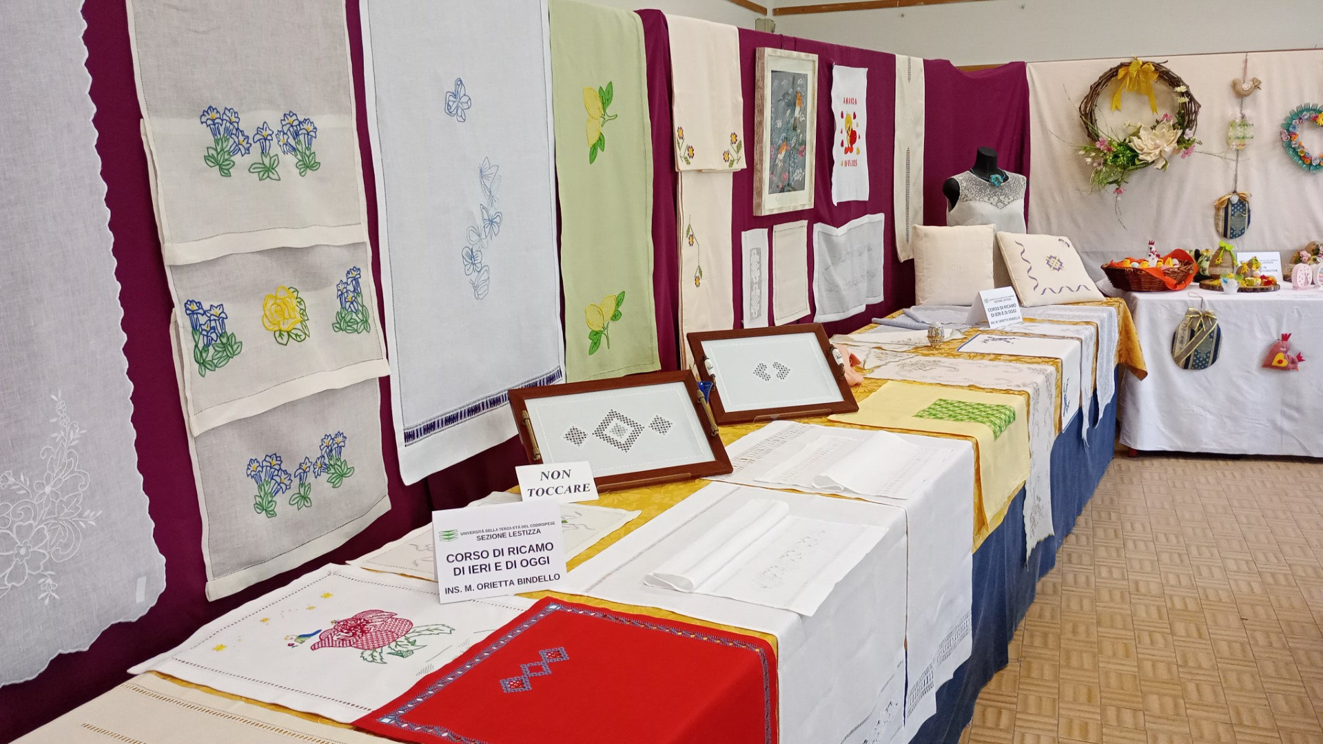 In particolare, spiccano i lavori dei corsi di cucito e macramè delle sezioni di Lestizza e Rivignano Teor. La fine arte del ricamo e dell'annodatura incuriosisce chiunque perché, diciamocelo, chi mai riuscirebbe a replicare lavori così minuziosi? Ebbene, l'ago e il filo sono per il ricamatore ciò che il pennello e la tavolozza sono per il pittore.