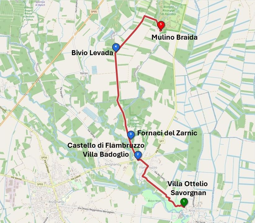 Mulino Braida a Flambro di Talmassons, passando per il Castelluzzo di Flambruzzo (Villa Badoglio) e le Fornaci del Zarnic.