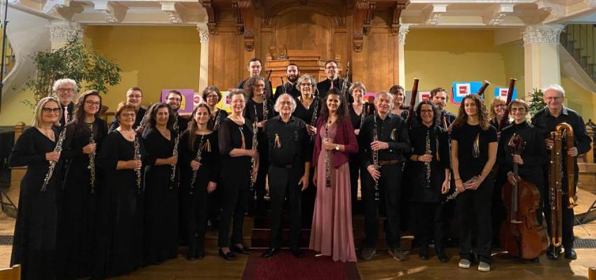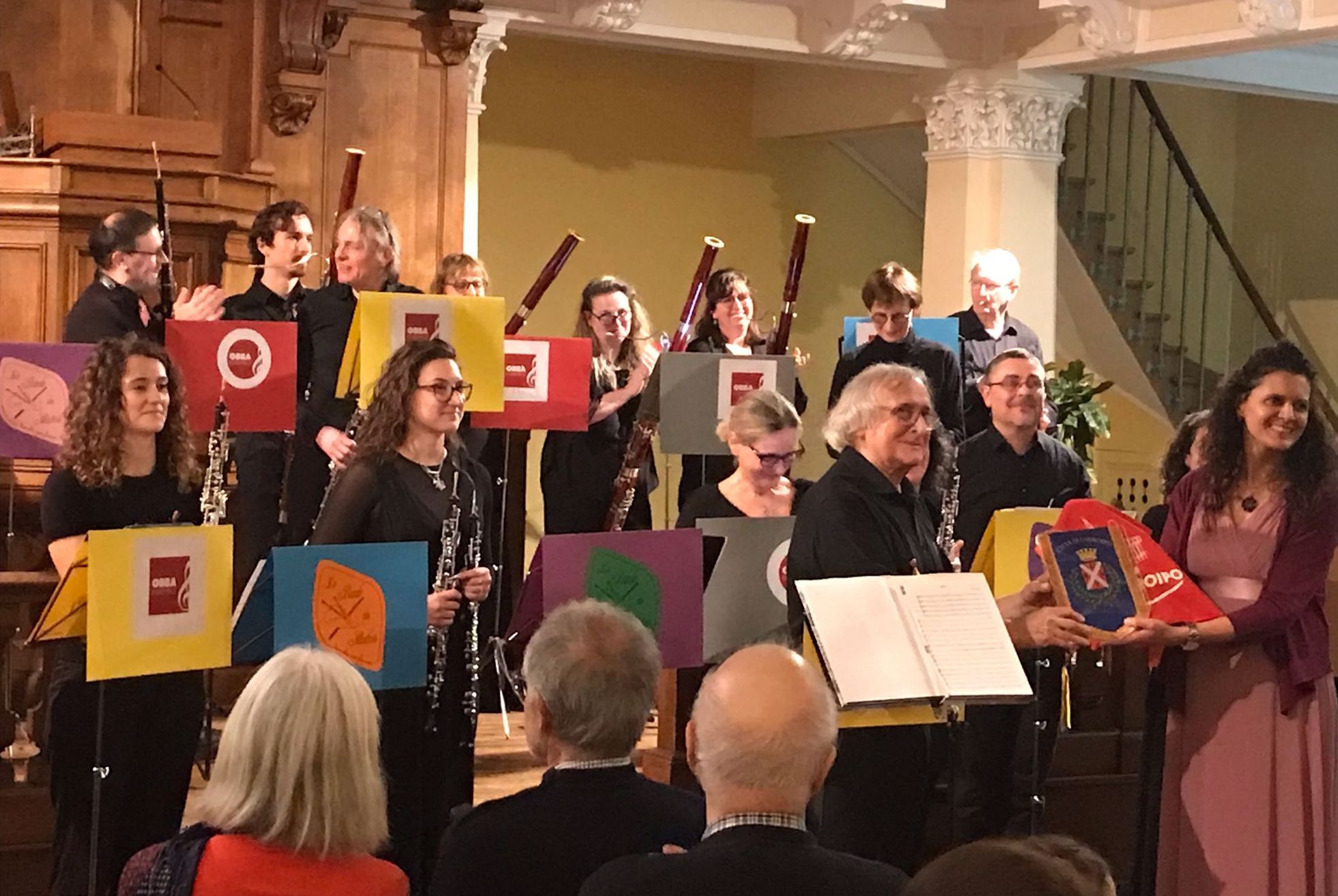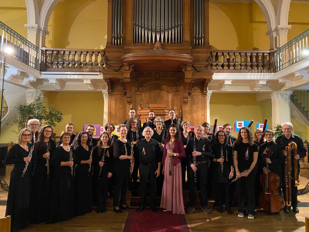 A novembre l’OBBA Ensemble, gruppo musicale dell’Associazione Musicale e Culturale Città di Codroipo APS, ha tenuto un concerto nella suggestiva cornice del Temple du Foyer de l’Âme nella capitale francese. Al termine la direttrice dell’ensemble, Serena Gani, ha consegnato ufficialmente il gagliardetto del Comune di Codroipo al M° Claude Villevieille, direttore della Bande des Hautbois che li ospitava, suggellando un gesto di amicizia, scambio culturale e collaborazione musicale tra Italia e Francia.