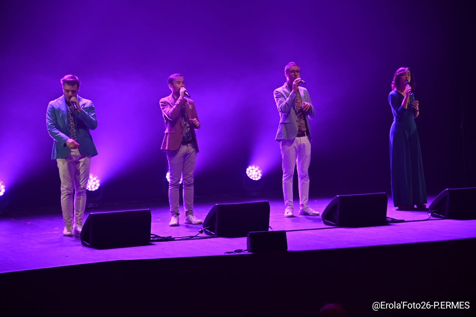 Con brani che hanno spaziato da Cesare Cremonini a Fabio Concato, dai Coldplay alle colonne sonore di film quali “Up”, i quattro cantanti cuneesi hanno saputo tessere armonie di voci e luci che hanno incantato.