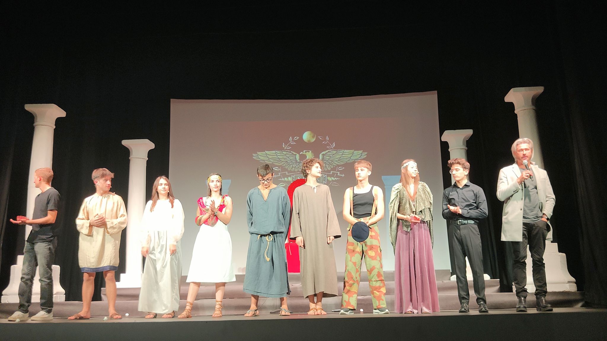 Metti 3 attrici e 4 attori in scena - giovanissimi e con grinta da vendere - più 2 registi, 2 musicisti, 2 fonici. Aggiungi il teatro, il Benois di Codroipo e la storia - lunga duemila anni - rivive. Anzi, si sposa con l'attualità.
