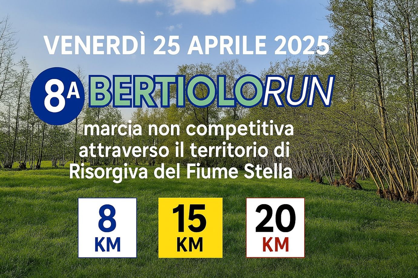 Marcia non competitiva attraverso il territorio di Risorgiva del Fiume Stella: un’occasione speciale per scoprire a passo libero il meraviglioso ambiente naturale delle risorgive e della campagna friulana! La BertioloRun è una marcia aperta a tutti (singoli, gruppi e famiglie), tra strade sterrate e sentieri immersi nella natura.