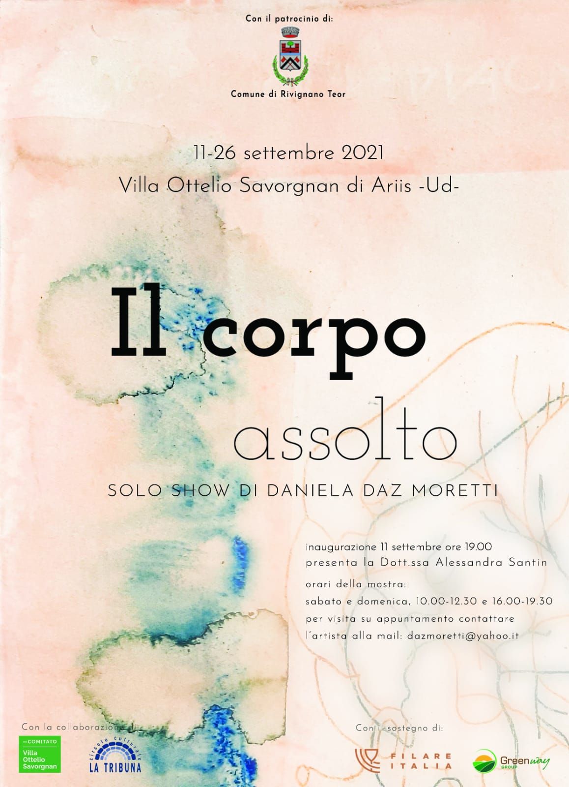 Vernissage 11 settembre 2021 ore 19.00 Villa Ottelio Savorgnan Via Chiesa 10, Ariis di Rivignano Aperture: sabato e domenica dalle 10 alle 12.30 e dalle 16 alle 19.30 Per appuntamento in altri giorni e orari contattare l’artista alla mail dazmoretti@yahoo.it
