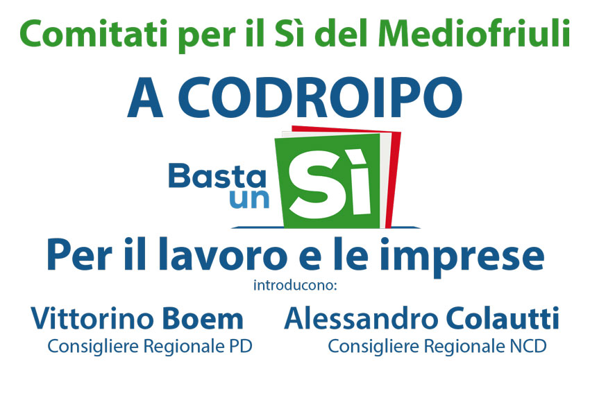 presso la Sala Conferenze della BCC Basiliano in piazza Giardini a Codroipo