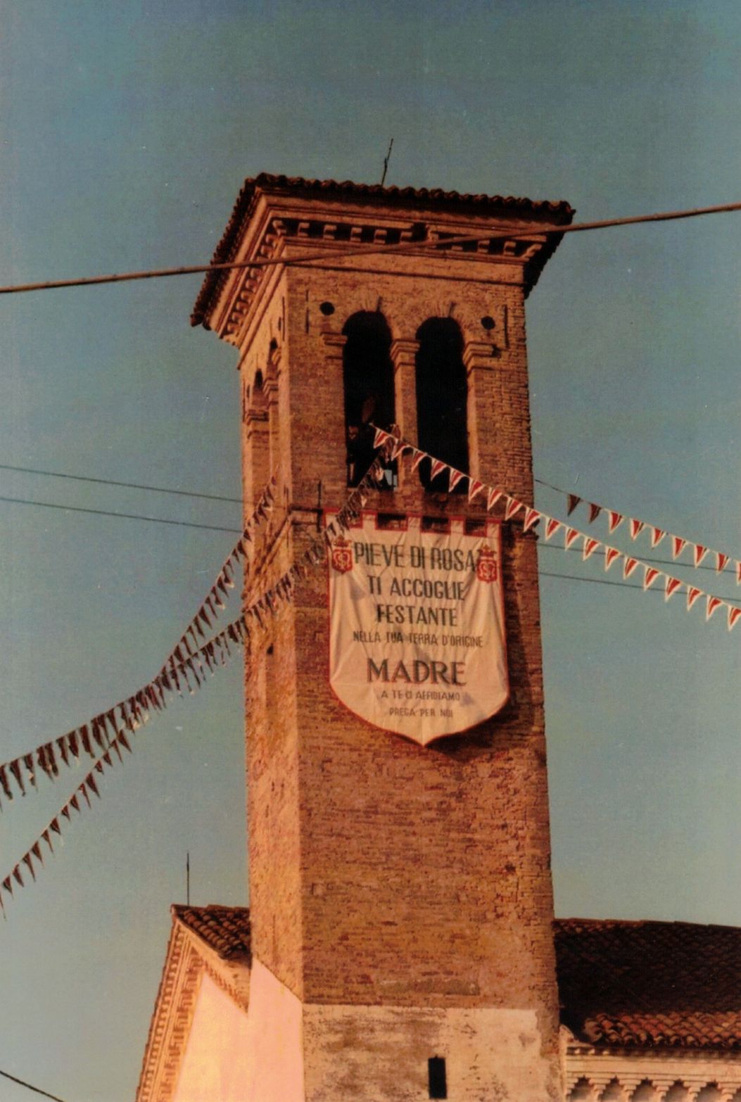 Domenica 21 settembre a Pieve di Rosa si terrà una speciale S. Messa solenne nel 50° dell'arrivo della copia dell'immagine miracolosa della Madonna di Rosa. La copia fu commissionata al pittore codroipese Luciano Schiava da mons. Giuseppe Zorzini, sacerdote originario di Camino e molto affezionato alla chiesa di Pieve. Aveva voluto così sostituire l'immagine che ora si conserva nel Santuario di Madonna di Rosa a San Vito al Tagliamento, legata all'apparizione della Vergine alla piccola Maria Giacomuzzi il 2 febbraio 1655, mentre la bambina pregava davanti alla sacra immagine affrescata su un muro della sua casa. L’affresco originale, realizzato dal pittore Marco Tiussi nel XIV secolo, era stato fatto portare dal padre di Maria nell’antica chiesa di San Nicolò, posta fuori le mura dell'abitato di San Vito. In questo luogo fu in seguito costruito il santuario mariano. Il dipinto donato da don Zorzini fu portato a Roma in occasione dell'Anno Santo, e benedetto da Papa Paolo VI il 24 settembre 1975 in San Pietro. L'8 dicembre dello stesso anno il quadro fu portato con una solenne processione da Camino a Pieve di Rosa, accompagnato dall'arcivescovo Alfredo Battisti, dalle autorità civili e da sacerdoti e fedeli accorsi in grandissimo numero.