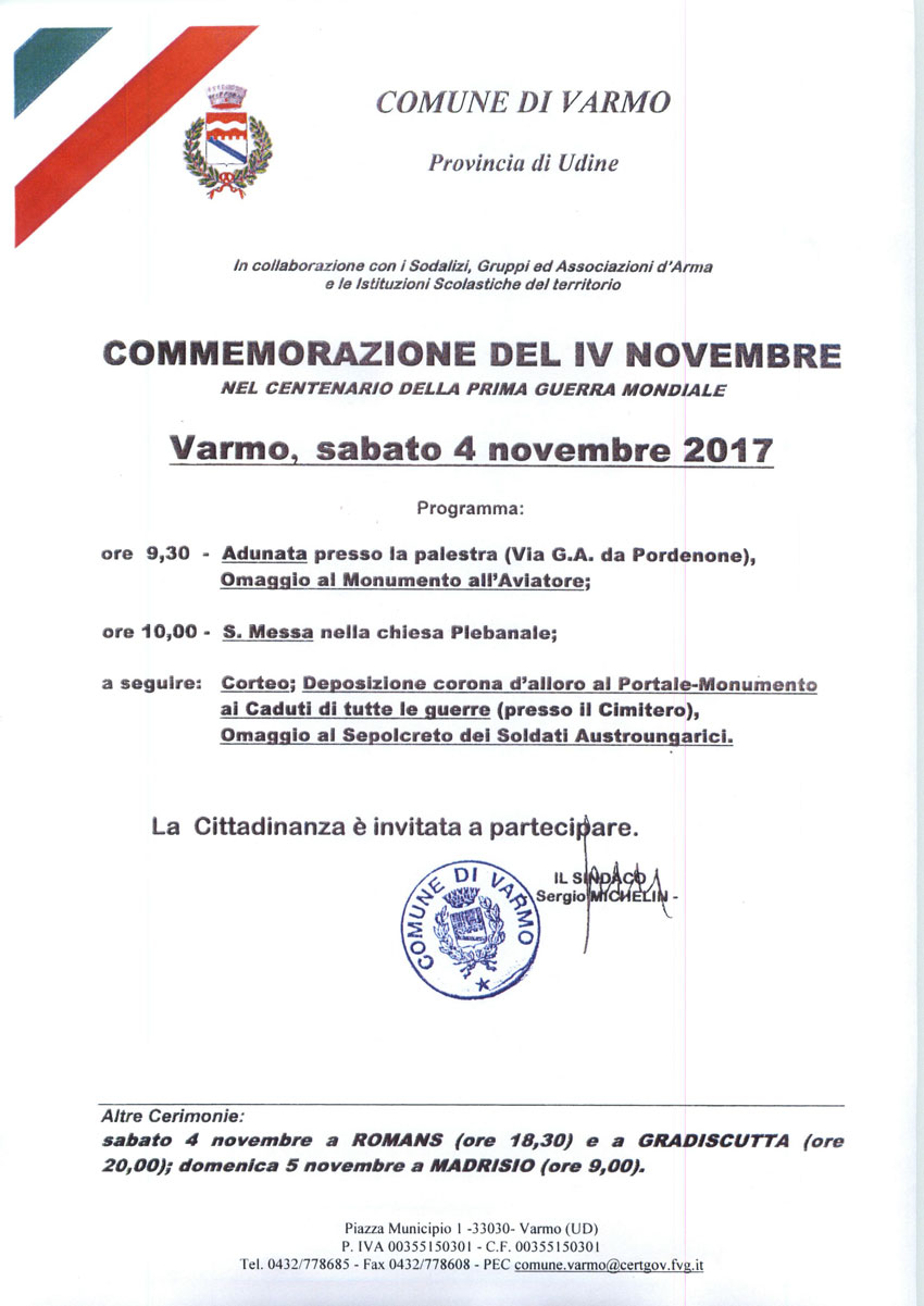 Commemorazione del IV novembre a Varmo