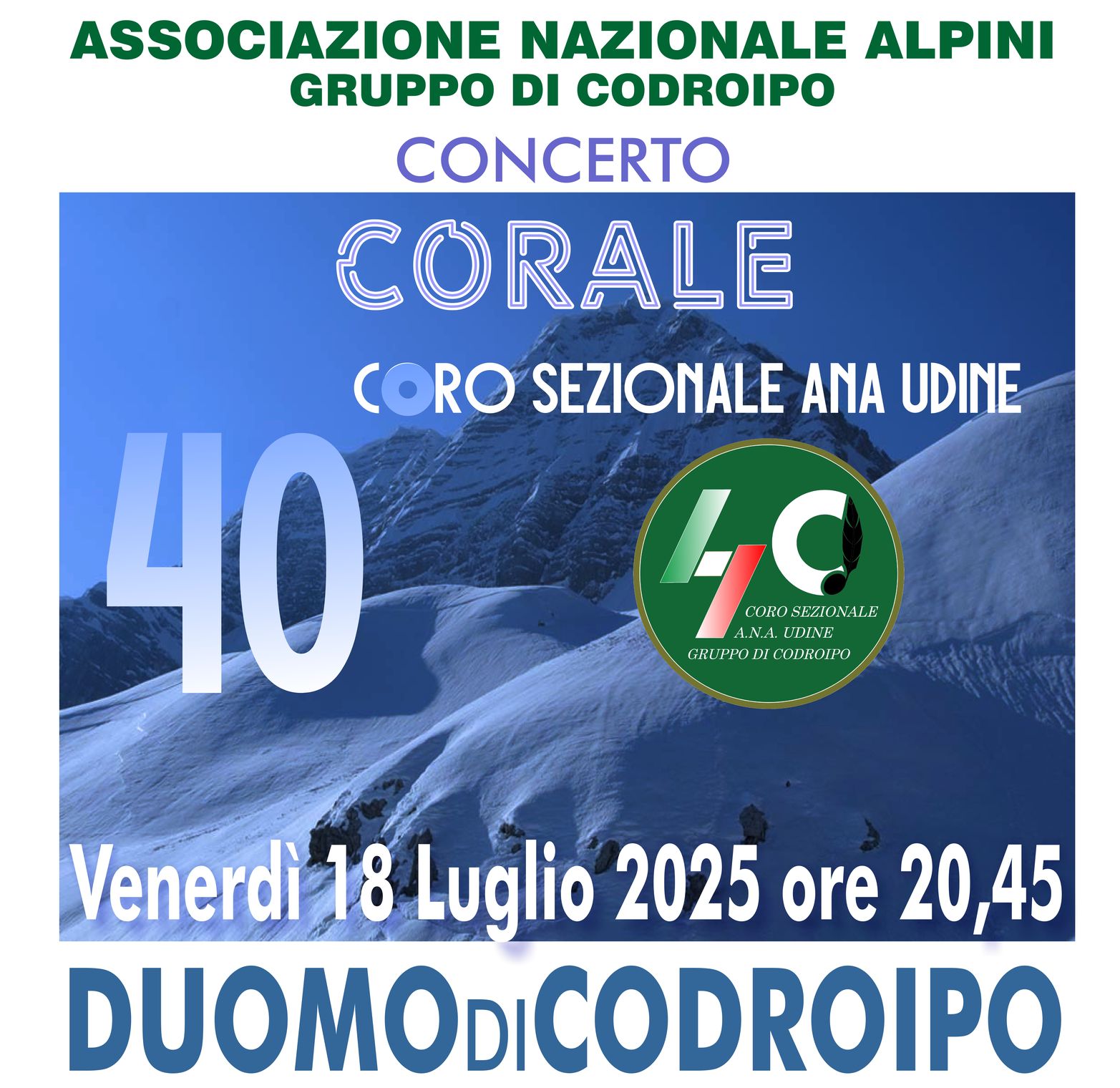 In attesa delle manifestazioni dal 17 al 19 ottobre 2025 per festeggiare il 95° anniversario della fondazione del Gruppo Alpini Codroipo, questa rassegna corale celebra anche il 40° del Coro Sezionale ANA Udine – Gruppo di Codroipo