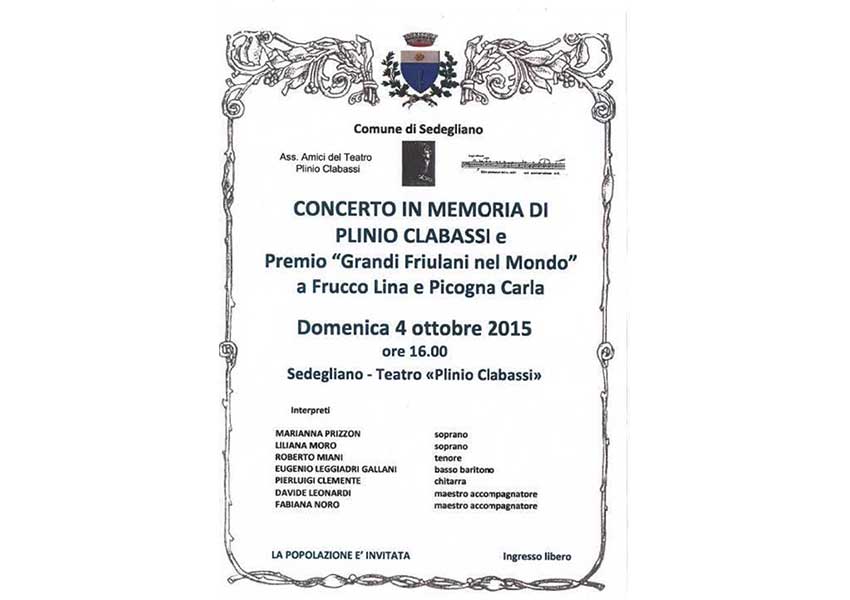 Concerto in memoria di Plinio Clabassi - Premio Grandi Friulani nel Mondo