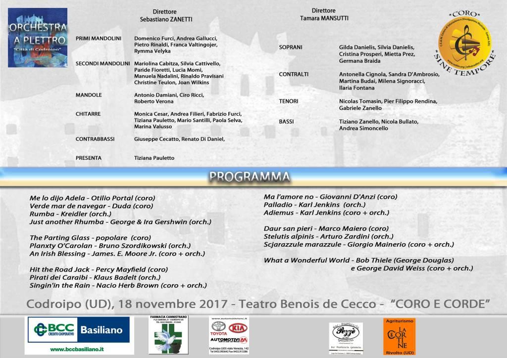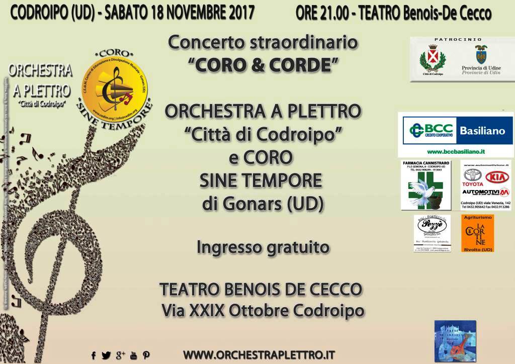 Sabato 18 novembre alle 21.00 l'Orchestra a Plettro Città di Codroipo e il coro Sine Tempore del CEDIM di Gonars per un concerto straordinario con due eccellenze del Friuli Venezia Giulia sullo stesso palco.