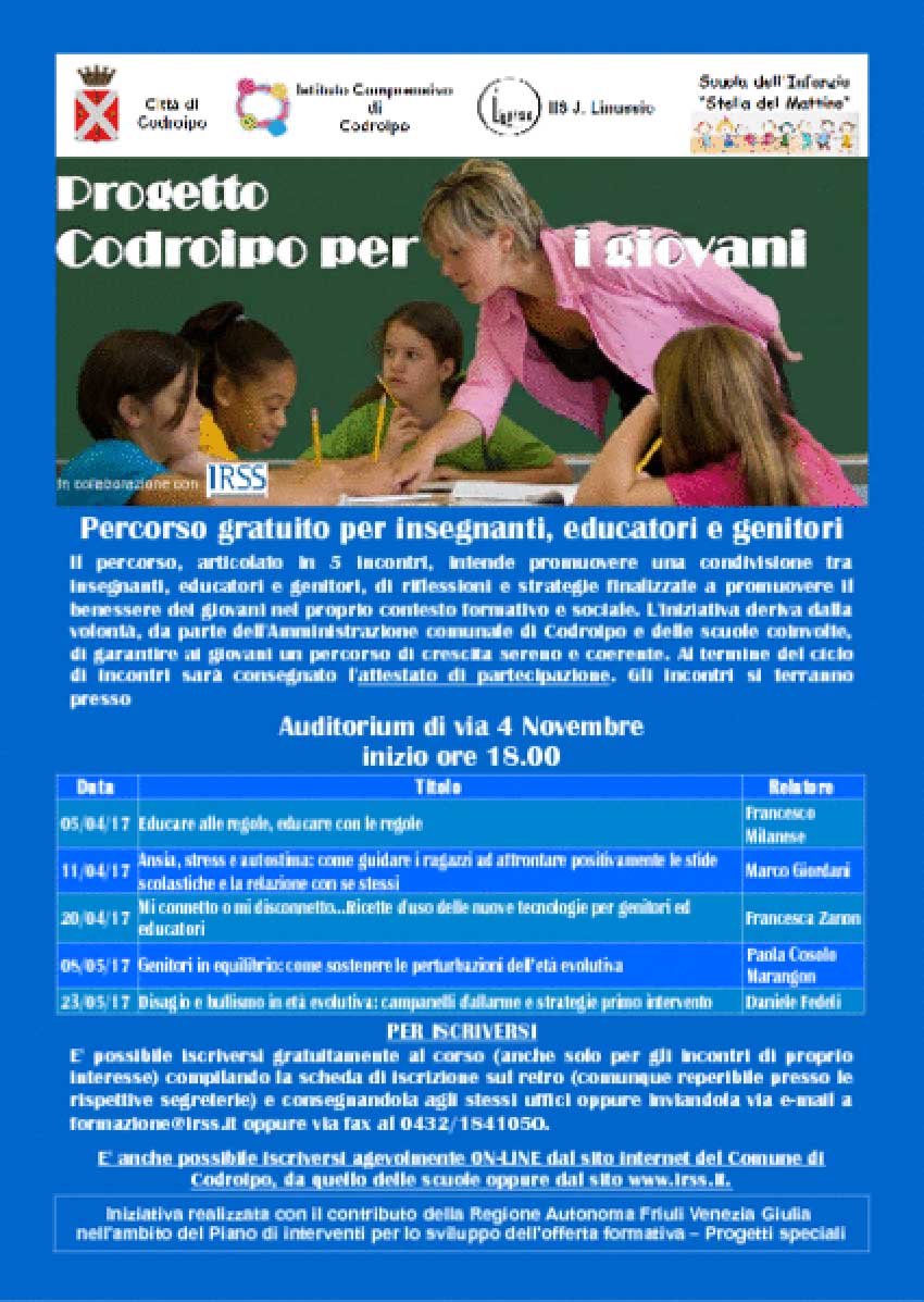 Progetto Codroipo per i Giovani: corsi gratuiti per insegnanti, educatori e genitori