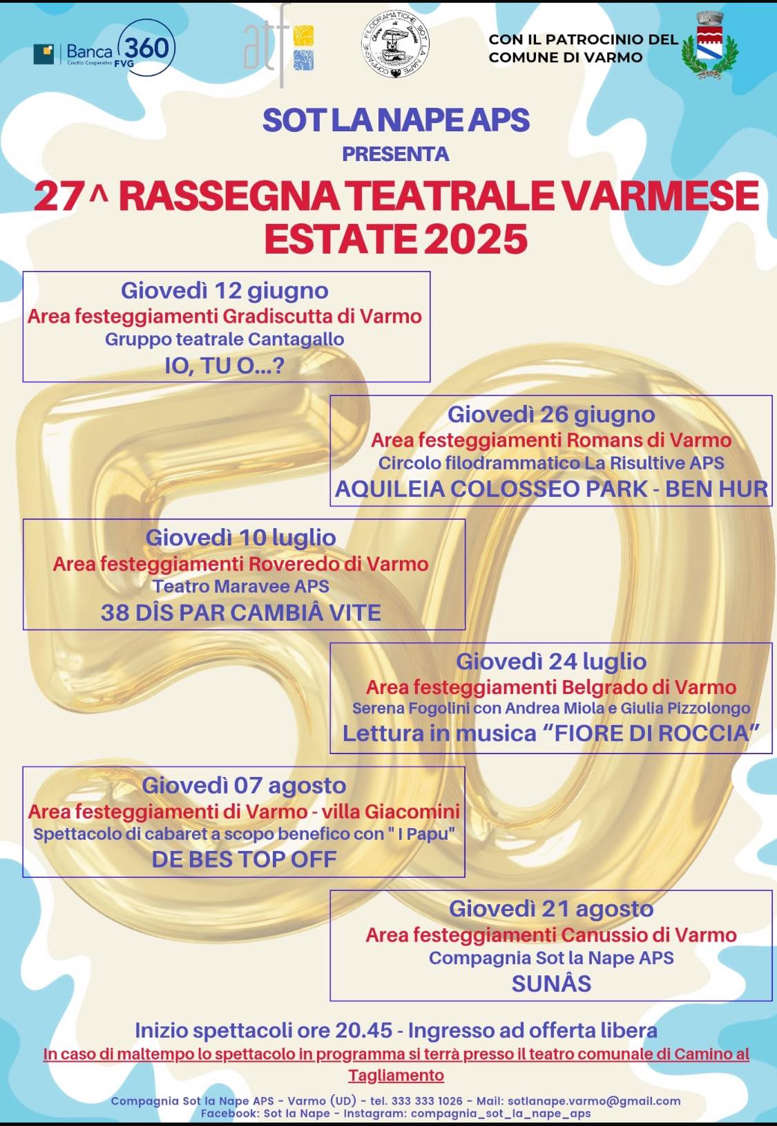 In caso di brutto tempo lo spettacolo si terrà presso il Teatro comunale di Camino al Tagliamento.