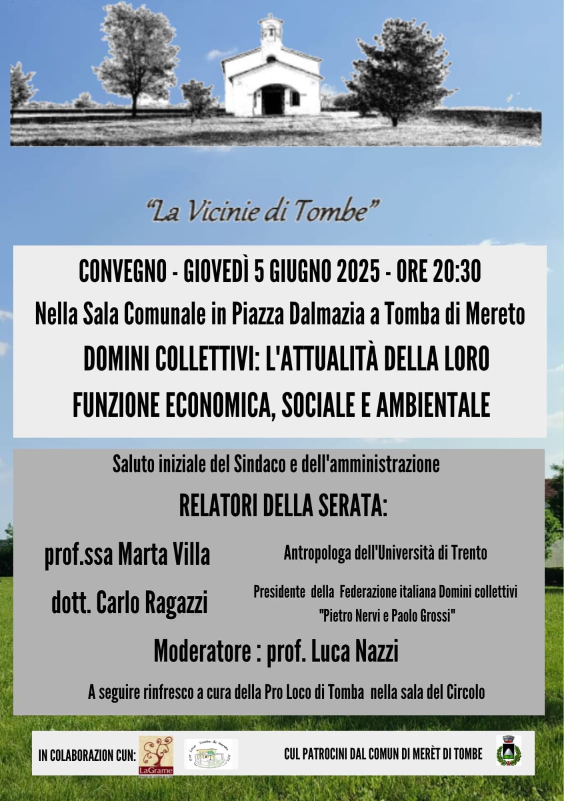 Due ospiti d’eccezione, giovedì 5 giugno, danno il via all’annuale festa della “Vicinie di Tombe”, con un confronto pubblico su “Domini collettivi: l’attualità della loro funzione economica, sociale e ambientale”. Alle ore 20.30, nella Sala della Latteria (in piazza Dalmazia 1), a Tomba di Mereto, l’antropologa Marta Villa dell’Università e del Centro studi e documentazione sui Demani civici e le Proprietà collettive di Trento e il presidente della Federazione nazionale dei Domini collettivi, Carlo Ragazzi, approfondiranno la questione, alla luce dei più importanti studi accademici sulla materia e delle più significative esperienze italiane di amministrazione comunitaria dei Beni collettivi. La serata sarà introdotta dal presidente della “Vicinie di Tombe”, Marco Bernardis, cui toccherà il compito di illustrare il programma della festa paesana che culminerà domenica 8 giugno con il pranzo comunitario sui “Prati collettivi di San Rocco”. Dopo i saluti del sindaco di Mereto di Tomba, Sandro Burlone, coordinerà i lavori Luca Nazzi dell’“Alleanza friulana Domini collettivi”. Al centro della riflessione saranno le straordinarie opportunità assicurate a tutte le Proprietà collettive friulane e italiane dalla riforma introdotta con la Legge statale 168 del 2017 “Norme in materia di domini collettivi”. Oltre a garantire pieno riconoscimento costituzionale alla Proprietà collettiva (ribadendo il peculiare regime giuridico di inalienabilità, indivisibilità, inusucapibilità e perpetua destinazione agro-silvo-pastorale), il provvedimento approvato all’unanimità dal Parlamento ha chiarito quali siano i compiti, antichi e moderni, che competono alle Comunità titolari di Beni collettivi e il grado di autonomia normativa e gestionale assicurato agli enti amministrativi emanazione delle Comunità proprietarie dei Beni. Tali previsioni legislative non sono restate lettera morta né in Friuli né in Italia, come testimonierà Carlo Ragazzi, che presiede l’intraprendente “Consorzio degli Uomini” di Massenzatica (Ferrara) e che, da alcuni mesi, sta girando l’Italia da un capo all’altro, per promuovere una piena applicazione della Legge 168, da un lato accompagnando gli enti gestori delle Comunità già attive nella transizione dai vecchi ordinamenti ai nuovi, dall’altro favorendo la nascita di nuovi Domini collettivi, laddove i Beni collettivi sono ancora gestiti dalle Amministrazioni comunali, in via sussidiaria e residuale, come ha chiarito la nuova Legge e ribadito nel 2021 la Corte di Cassazione. Alla serata di Tomba, sono state invitate tutte le numerose Comunità regionali titolari di Domini collettivi già costituiti o in via di costituzione, oltre a quelle che hanno già aderito alla Federazione nazionale dei Domini collettivi “Paolo Grossi e Pietro Nervi”.