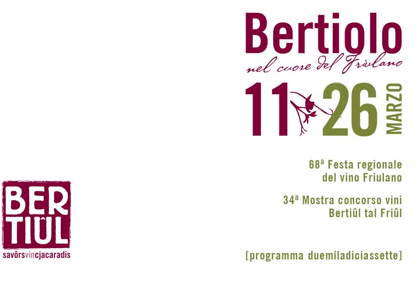 - Presso l’Enoteca ospite la Pro Loco di Pasian di Prato che proporrà una serata di degustazione con prodotti tipici abbinati ai vini della Mostra Concorso Vini “Bertiûl tal Friûl”.