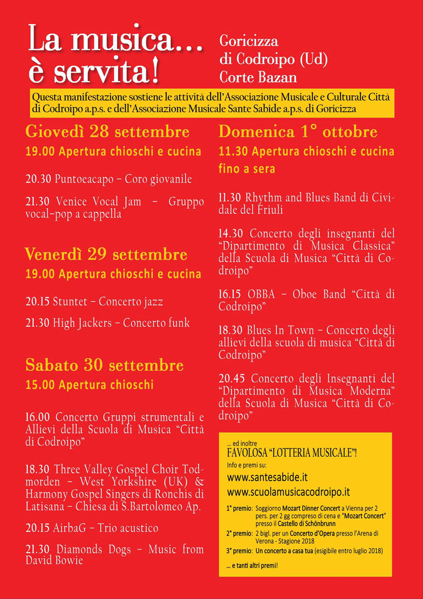 UN LUNGO WEEK END DI BUONA MUSICA E TIPICA CUCINA BAVARESE 5^ Edizione a cura dell’Ass. Musicale “Città di Codroipo e dell’ Ass. Musicale Sante Sabide di Goricizza PROGRAMMA