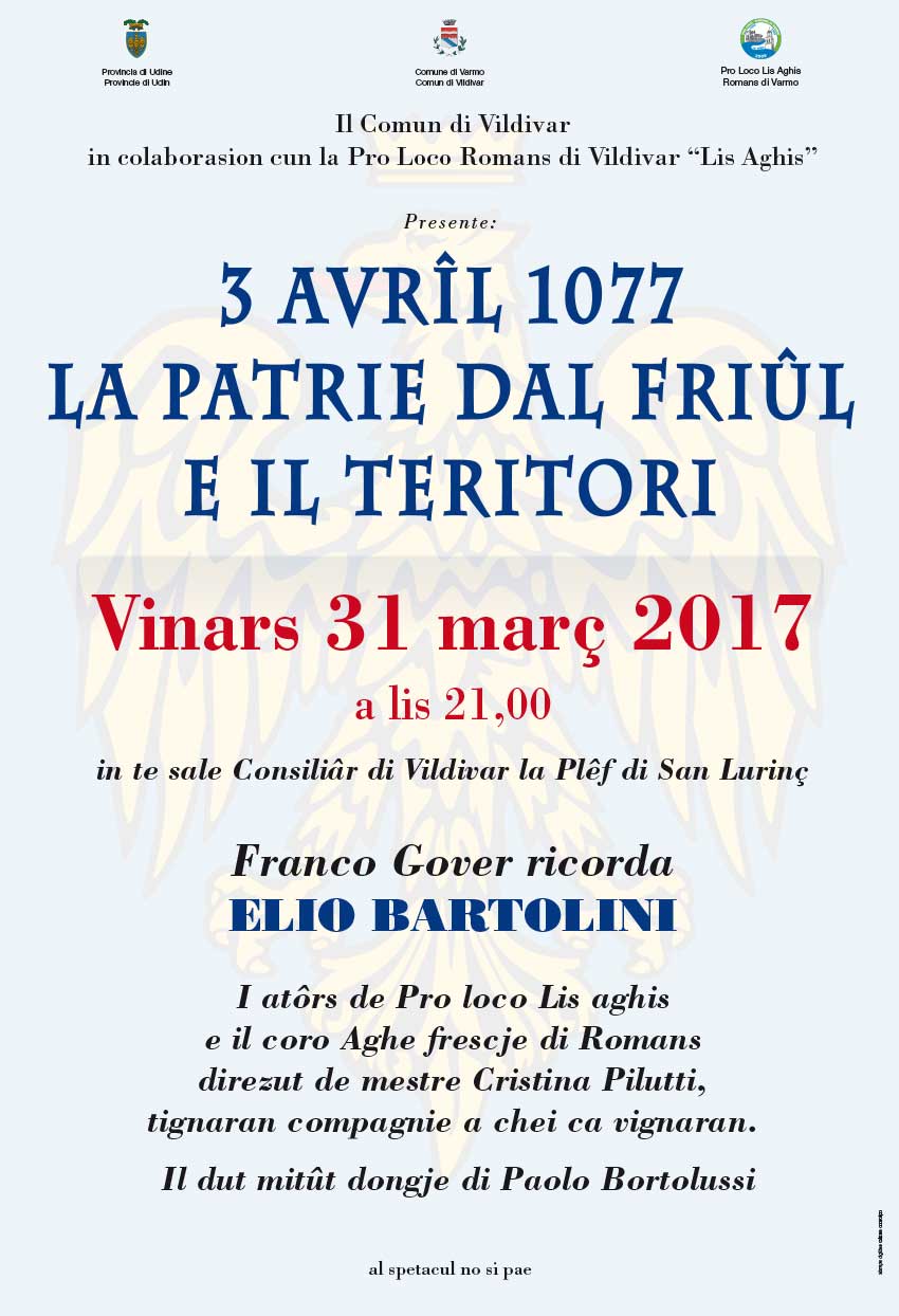 Quest’anno ricordiamo, per il tredicesimo anno con “3 avrîl 1077 la Patrie dal Friûl e il teritori” nella sala consiliare del Comune di Varmo: Elio Bartolini.