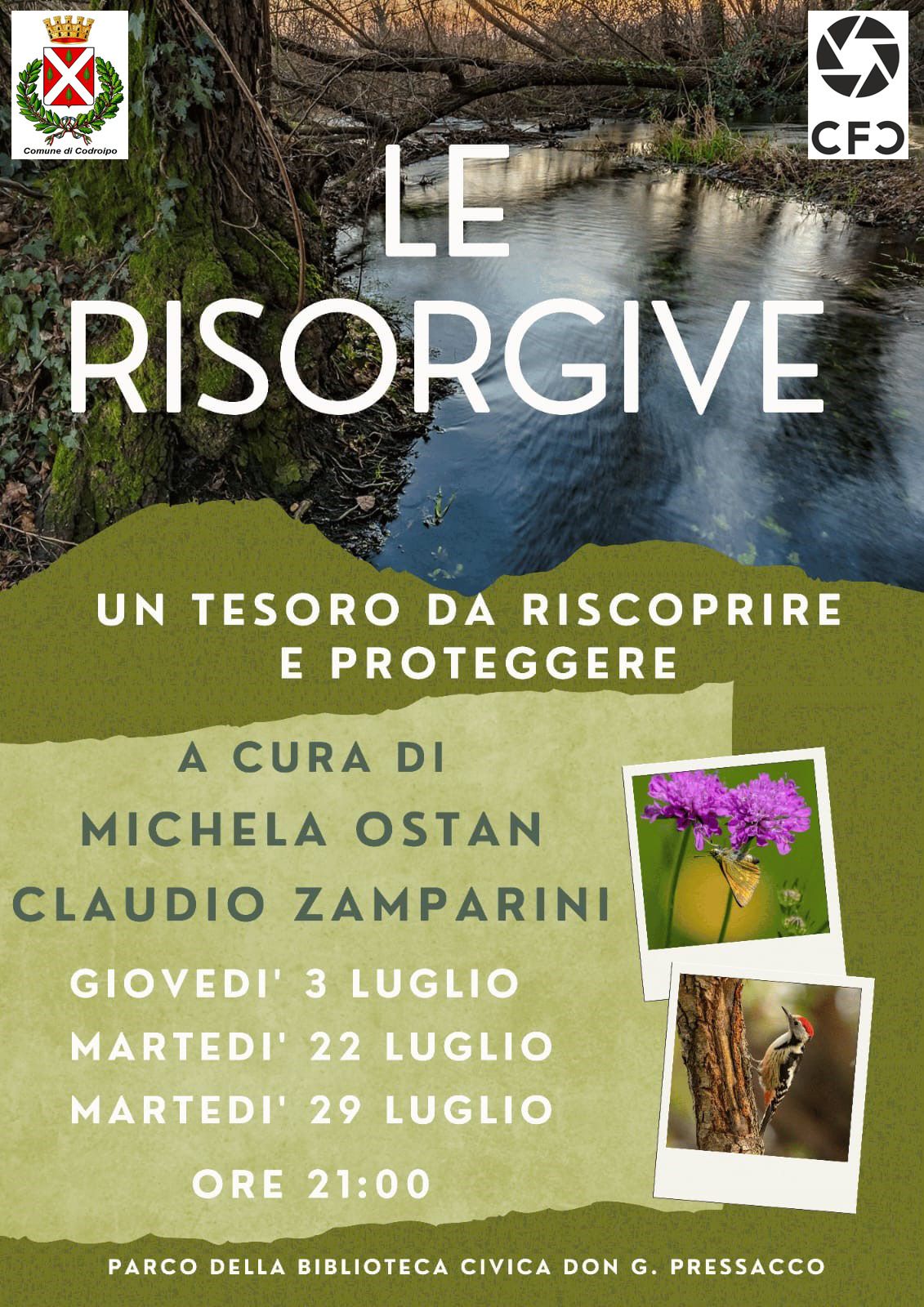Il Circolo Fotografico Codroipese vi invita a una serie di serate speciali dedicate alla scoperta e valorizzazione delle risorgive, ambienti unici e preziosi del nostro paesaggio.