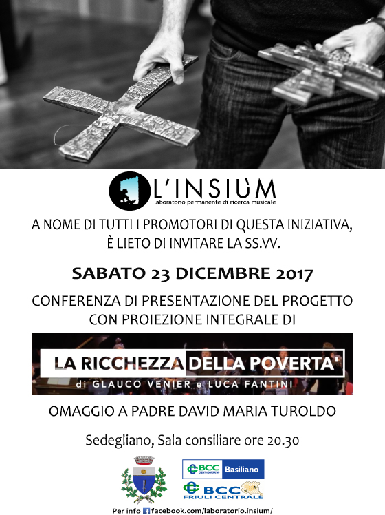 CONFERENZA DI PRESENTAZIONE DEL PROGETTO CON PROIEZIONE DE 'LA RICCHEZZA DELLA POVERTÀ' OMAGGIO A PADRE D.M. TUROLDO