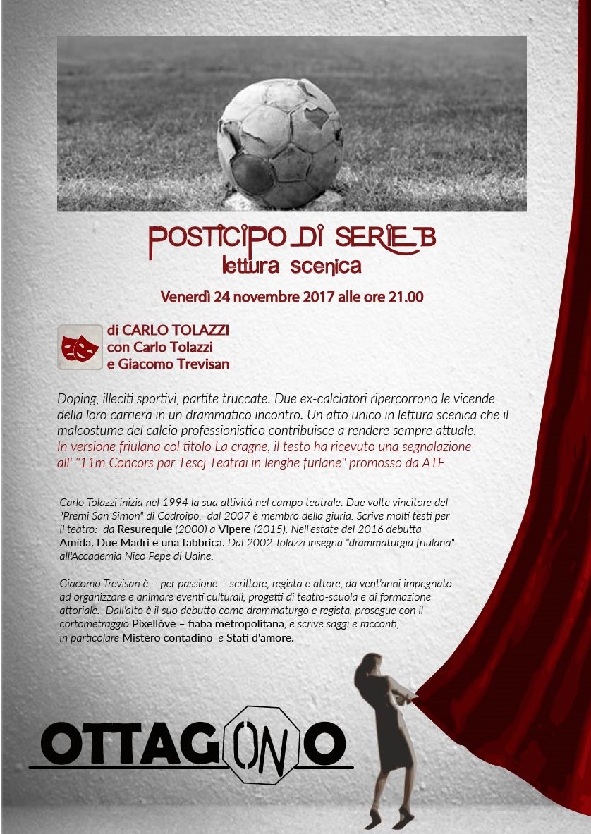 Doping, illeciti sportivi, partite truccate. Due ex-calciatori ripercorrono le vicende della loro carriera in un drammatico incontro. Un atto unico in lettura scenica che il malcostume del calcio professionistico contribuisce a rendere sempre attuale. In vestione friulana col titolo La cragne, il testo ha ricevuto una segnalazione all' "11m Concors par Tescj Teatrai in lenghe furlane" promosso da ATF.