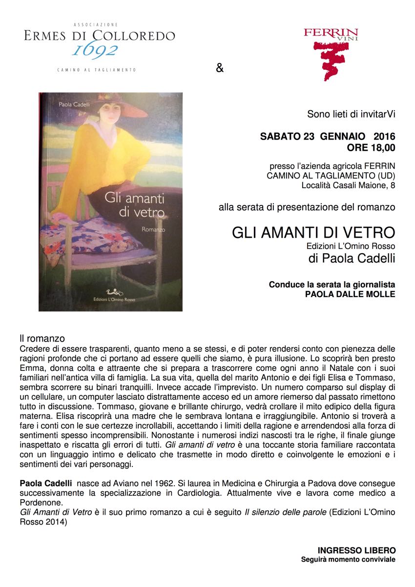 Paola Cadelli nasce ad Aviano nel 1962. Si laurea in Medicina e Chirurgia a Padova dove consegue successivamente la specializzazione in Cardiologia. Attualmente vive e lavora come medico a Pordenone.