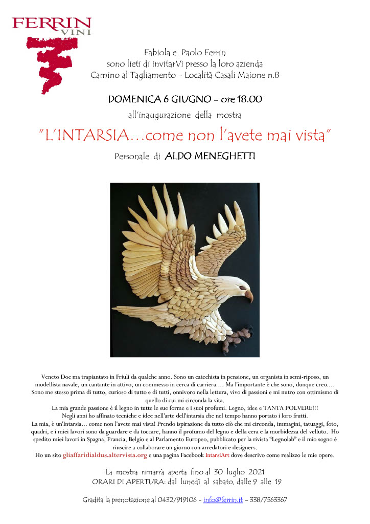 dal: 05/06/2021 al: 29/07/2021 Orario: 18.00 Luogo: Az. Agricola Ferrin, Casali Maione, Camino al Tagliamento