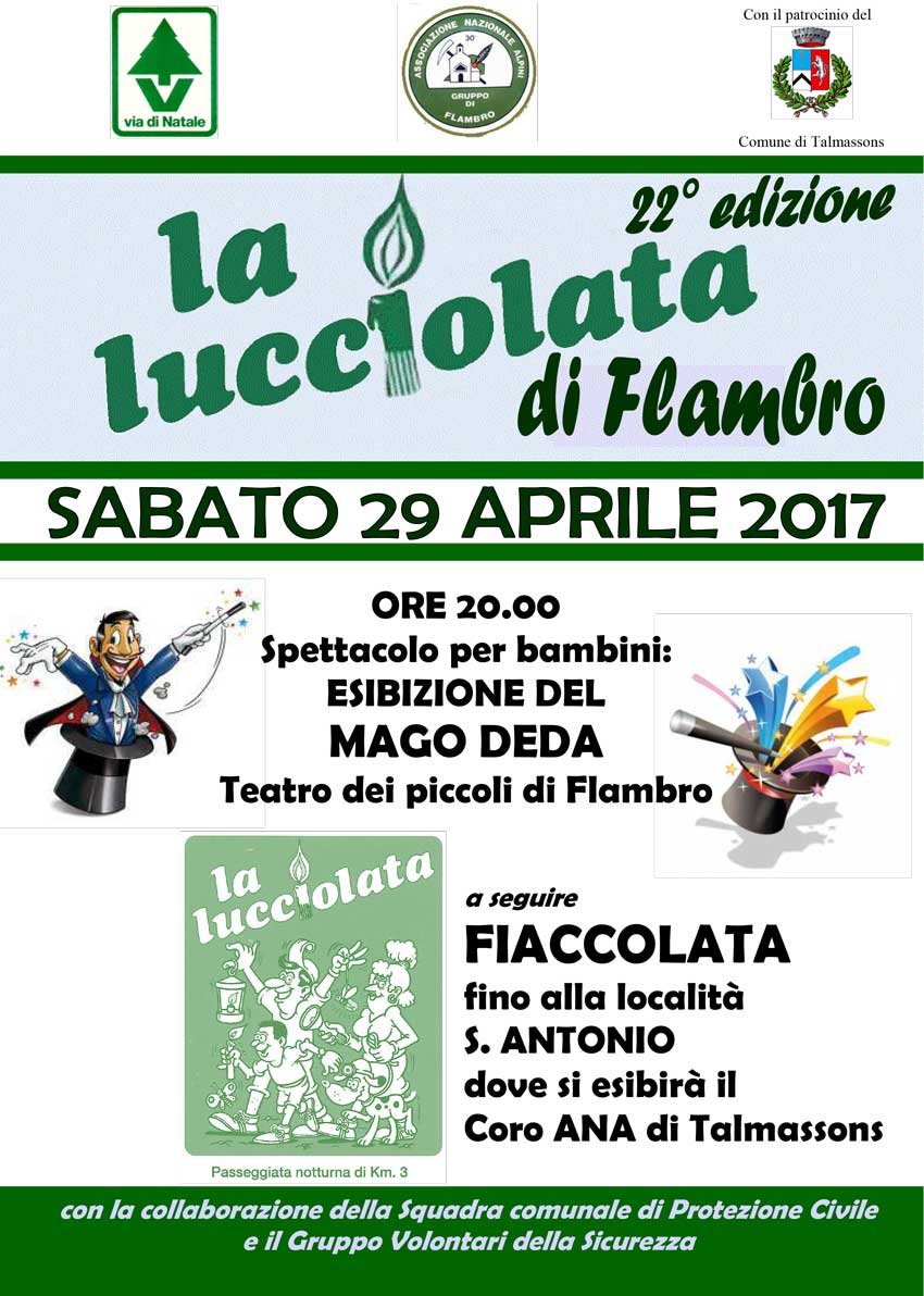 Si rinnova per la 22^ edizione la tradizionale Lucciolata a Flambro fino alla località S. Antonio, organizzata dal Gruppo Alpini di Flambro.