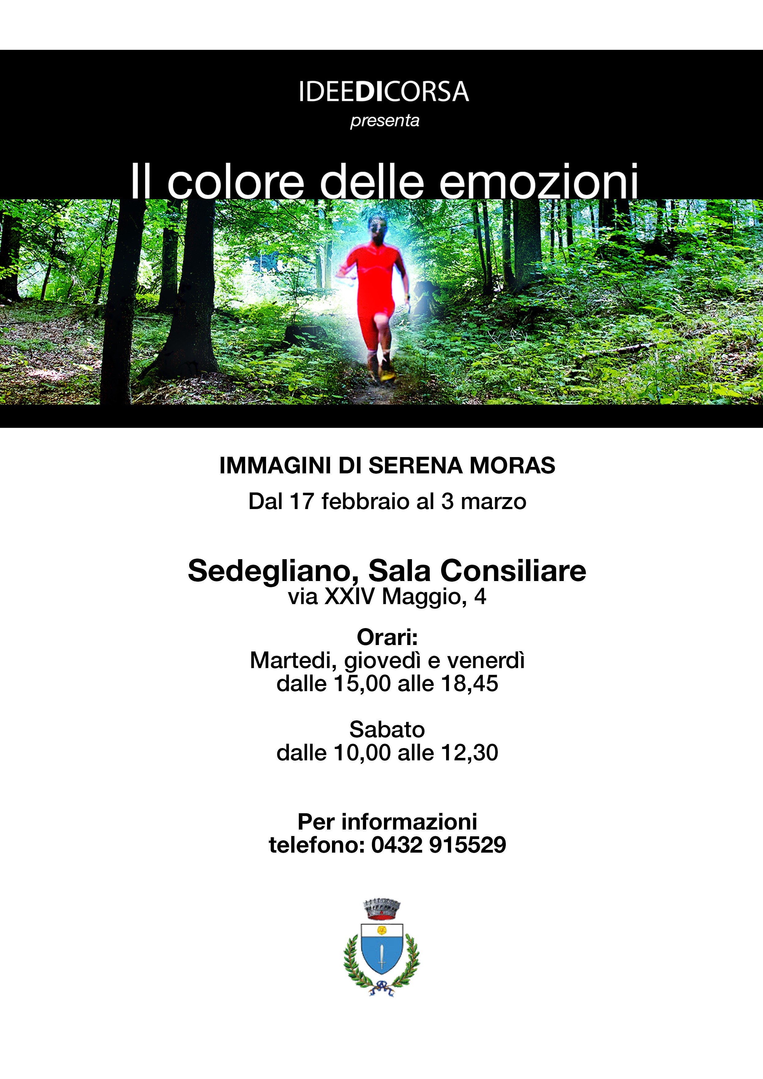 L'esposizione fotografica “Il colore delle emozioni”, allestita presso la Sala Consiliare di Sedegliano e presso il foyer del Teatro comunale dal 17 febbraio al 3 marzo 2018, sarà visitabile nei seguenti orari: per la Sala Consiliare martedì, giovedì e venerdì 15.00-18.45, sabato 10.00-12.30; l'esposizione presso il foyer del teatro sarà, invece, aperto al pubblico nelle giornate in cui sono in programma gli spettacoli teatrali.