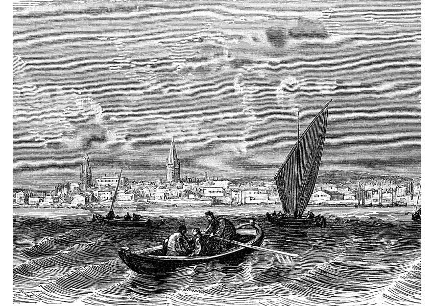 Si passa poi a Trieste dove Yriarte iniziò il suo peregrinare in Istria, Dalmazia e Montenegro. L’antica Tergeste è proposta in una decina di tavole che consentono di spaziare dalle rovine romane, alla piazza della Borsa cuore pulsante ed economico della città che allora era porto Austro-Ungarico, capitale di attività marittime assicurative e culturali, alla vita delle famiglie dei “cici”, alle vicine saline, a San Giusto e altri scorci di una Trieste descritta da Svevo, Saba, Slataper.