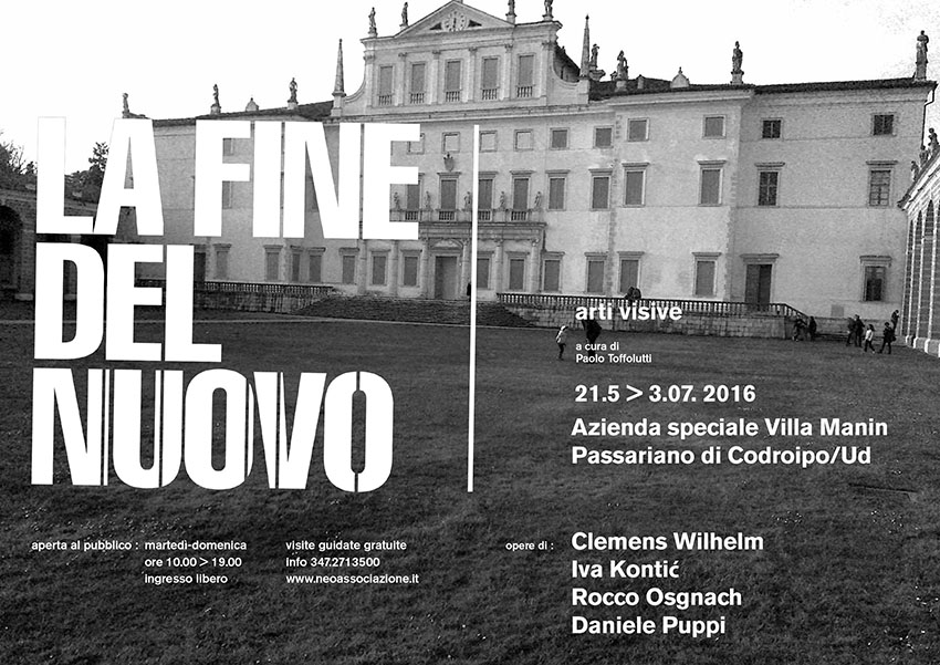 Il titolo della mostra la fine del nuovo intende tematizzare una specifica condizione già sorvegliata dalle poetiche contemporanee dell’arte cioè il superamento del momento della produzione dell’opera in ragione del suo consumo elaborato nella fase di comunicazione e diffusione pubblica del prodotto. L’importanza assunta nel riposizionare e ridefinire la ricezione dell’opera, costituisce per artista-critico-pubblico il vero soggetto da plasmare e riprogrammare in ragione di un nuovo principio di realtà che li vede confondersi e sparire dalla scena, così divisi e distinti per vestire il ruolo unico e trasversale di utente-consumatore.