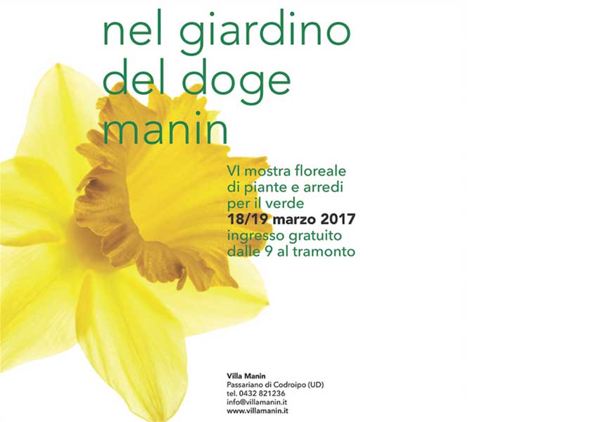 Il parco della Villa ospita la VI edizione di “Nel giardino del doge Manin”, una manifestazione ormai consolidata dedicata al florovivaismo più qualificato, con una particolare attenzione rivolta all’arredo e all’oggettistica da giardino: l’iniziativa si presenta nella sua versione primaverile con un’ampia scelta di piante per la nuova stagione. Dalle 9 del mattino al tramonto, più di novanta espositori selezionati, provenienti da tutta Italia e dall’estero, propongono un appuntamento, a ingresso gratuito, nella residenza dell’ultimo doge, che ospita il più importante giardino storico del Friuli Venezia Giulia.