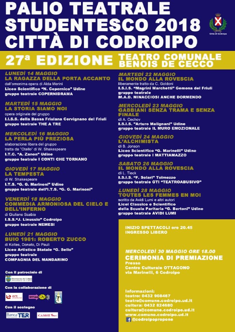 dal: 14/05/2018 al: 18/05/2018 Orario: 20:45 Luogo: Teatro Benois De Cecco, Codroipo