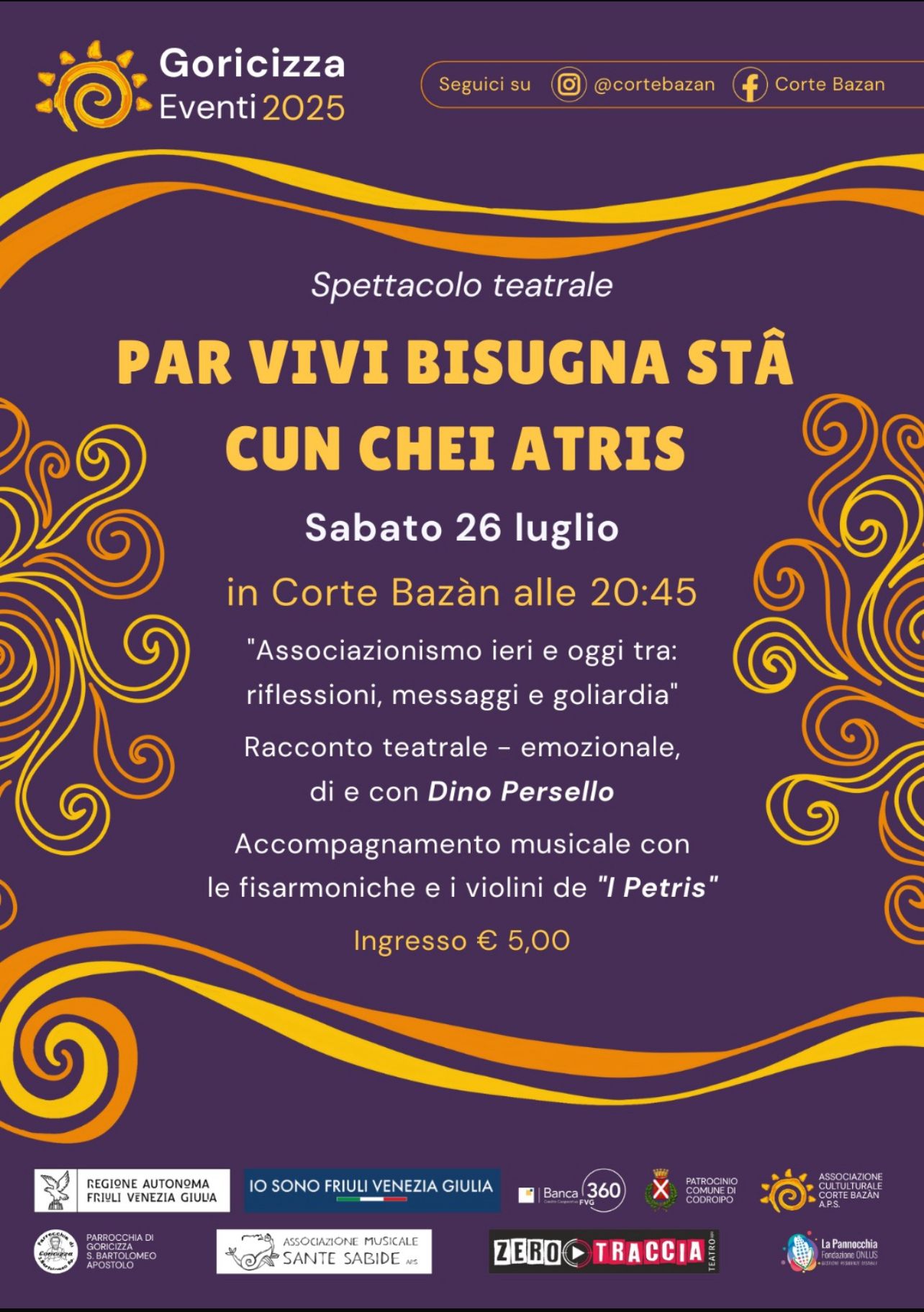 Associazionismo ieri e oggi tra riflessioni, messaggi e goliardia. Racconto teatrale - emozionale, di e con Dino Persello Accompagnamento musicale con le fisarmoniche e i violini de "I Petris"