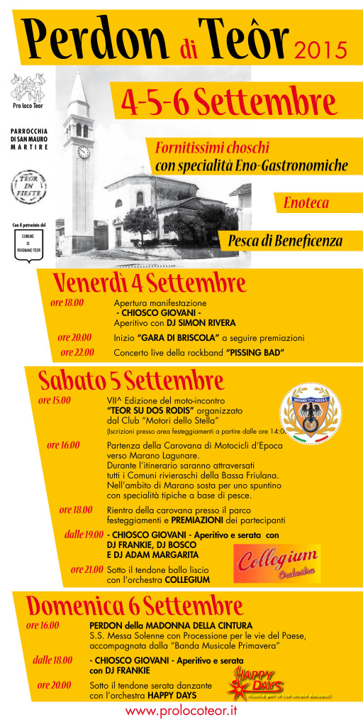 - ore 15.00 VII^ Edizione del moto-incontro “TEOR SU DOS RODIS” organizzato dal Club Motori dello Stella