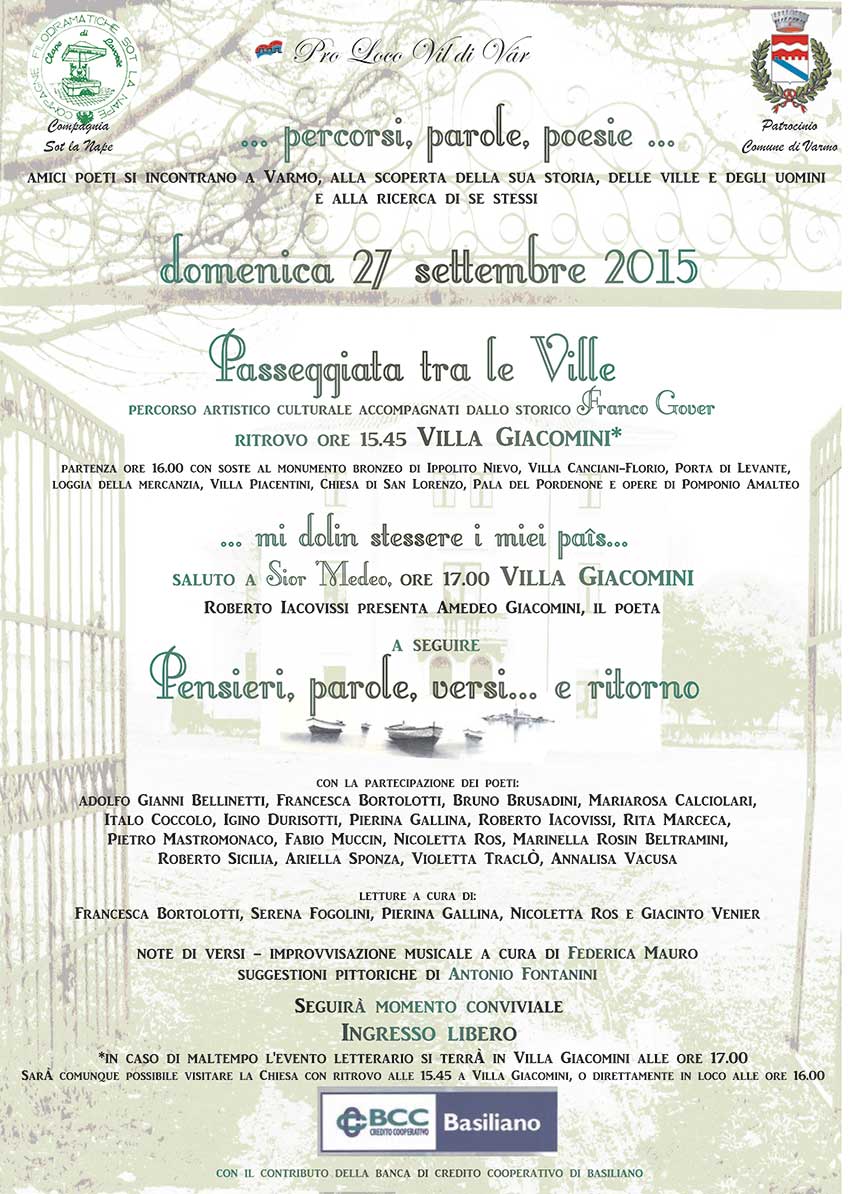 con la partecipazione dei poeti: Adolfo Gianni Bellinetti, Francesca Bortolotti, Bruno Brusadini, Mariarosa Calciolari, Italo Coccolo, Igino Durisotti, Pierina Gallina, Roberto Iacovissi, Rita Marceca, Pietro Mastromonaco, Fabio Muccin, Nicoletta Ros, Marinella Rosin Beltramini, Roberto Sicilia, Ariella Sponza, Violetta Traclò, Annalisa Vucusa